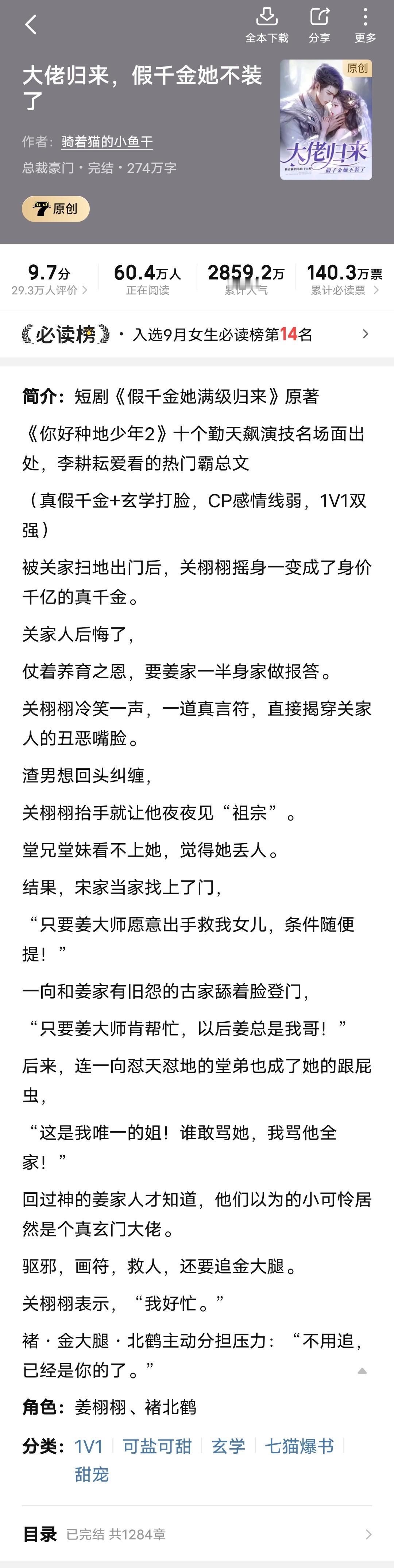 2《大佬归来,假千金她不装了》骑着猫的小鱼干