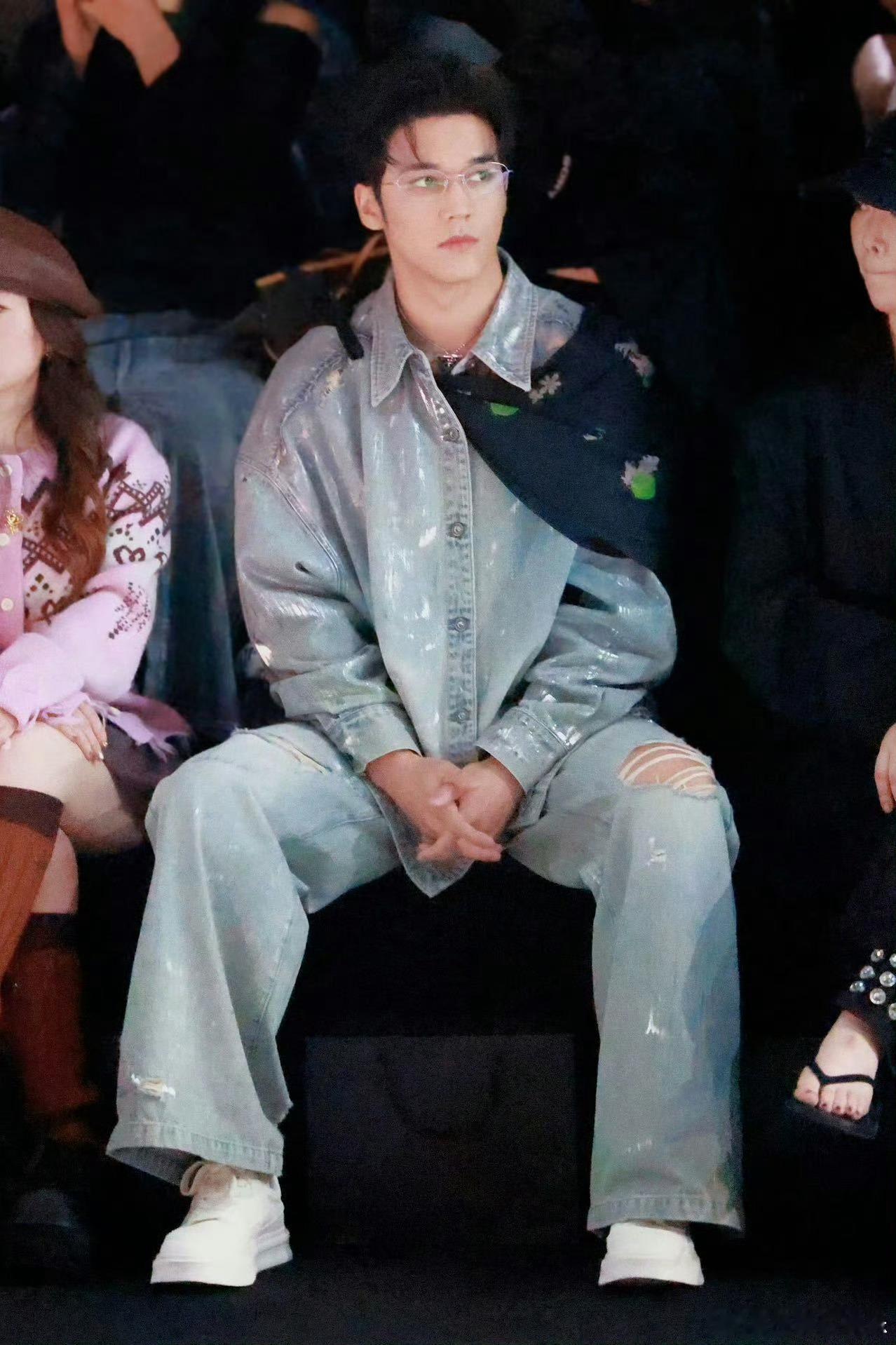 陈牧驰刷银丝牛仔造型速看陈牧驰时装周名场面!银丝牛仔拼黑披肩,手工涂痕超吸睛,