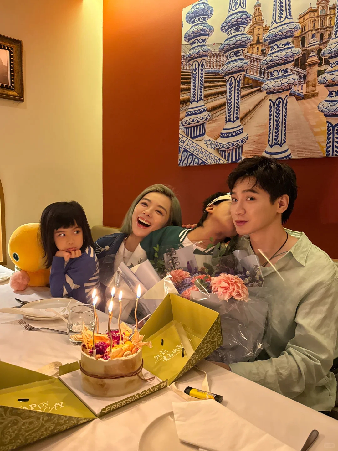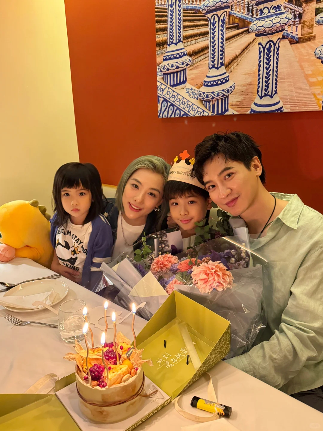 刘璇为儿子庆祝10岁生日[蛋糕]刘璇一家四口长得都好看,特别是她女儿,下巴尖尖的