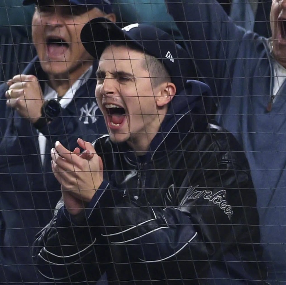 甜茶和女友看棒球赛 “甜茶”提莫西·查拉梅、凯莉·詹娜一起看棒球,亮相纽约洋基队VS多伦多蓝鸟队比赛。