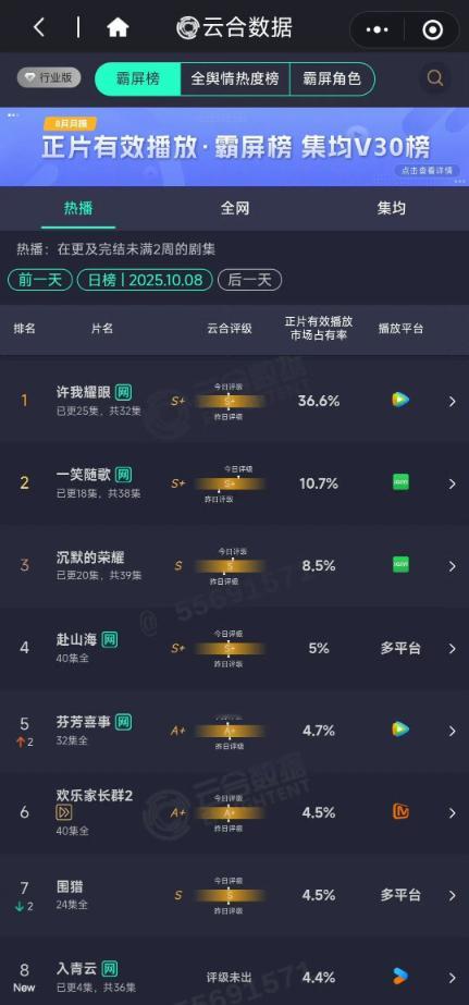 《许我耀眼》凭借亮眼数据保持登顶态势,这样的结果体现出观众对剧集的持续支持。这样