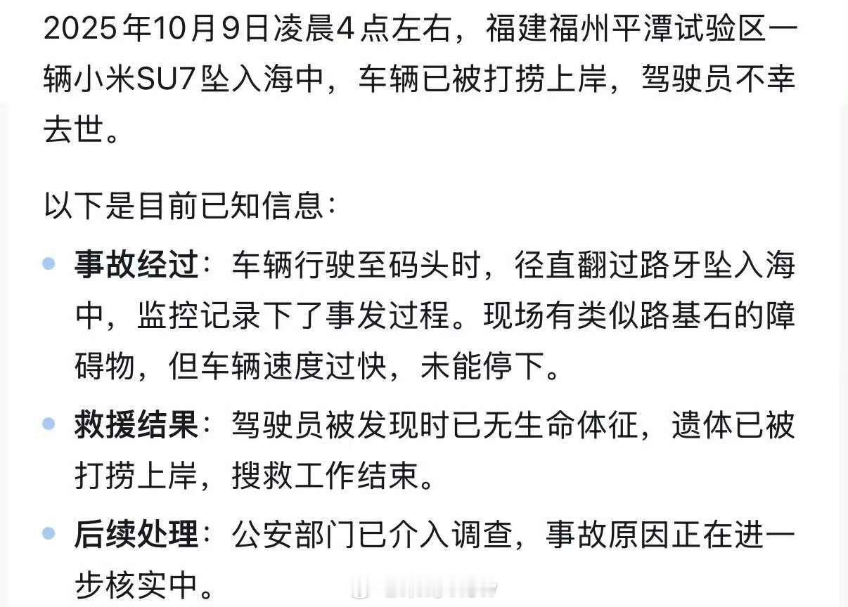 小米SU7车主凌晨坠海不幸死亡这场事故本身已足够让人痛心惋惜,可我实在无法理解,为何总有声音不分青红皂白地将矛头对准小米,在网上肆意带节奏。当下最该做的,是耐心等待警方的调查结论,而非盲目揣测。