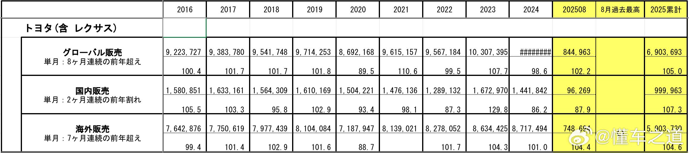 懂车之道讯懂车之道快讯,丰田汽车公司公布8月全球产销情况。数据显示,8月丰田汽