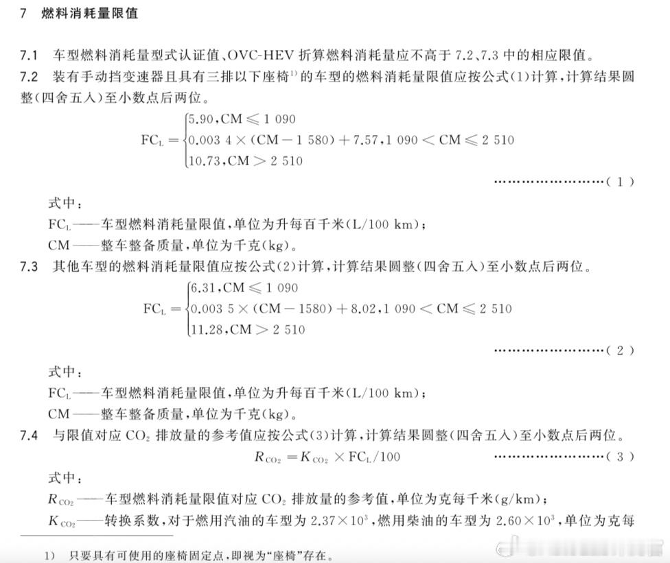 按照这个计算方法,三排以下车型,整备质量若在1090kg以下,百公里油耗不能超过6.31L;若在2510kg以上,百公里油耗不能超过11.28L。