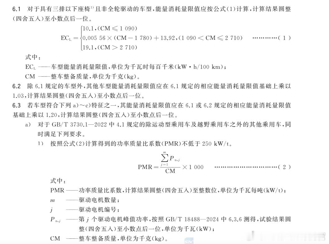 纯电车百公里电耗有了限值,这个限值随整车整备质量变化,计算方式按照GB 36980.1—2025计算,具体怎么算可以参考下图二。