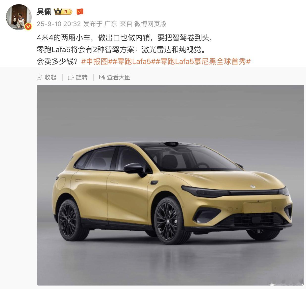 零跑Lafa5,这次曝光的是无激光雷达的版本,你觉得对于这样的小车,你是愿意便宜