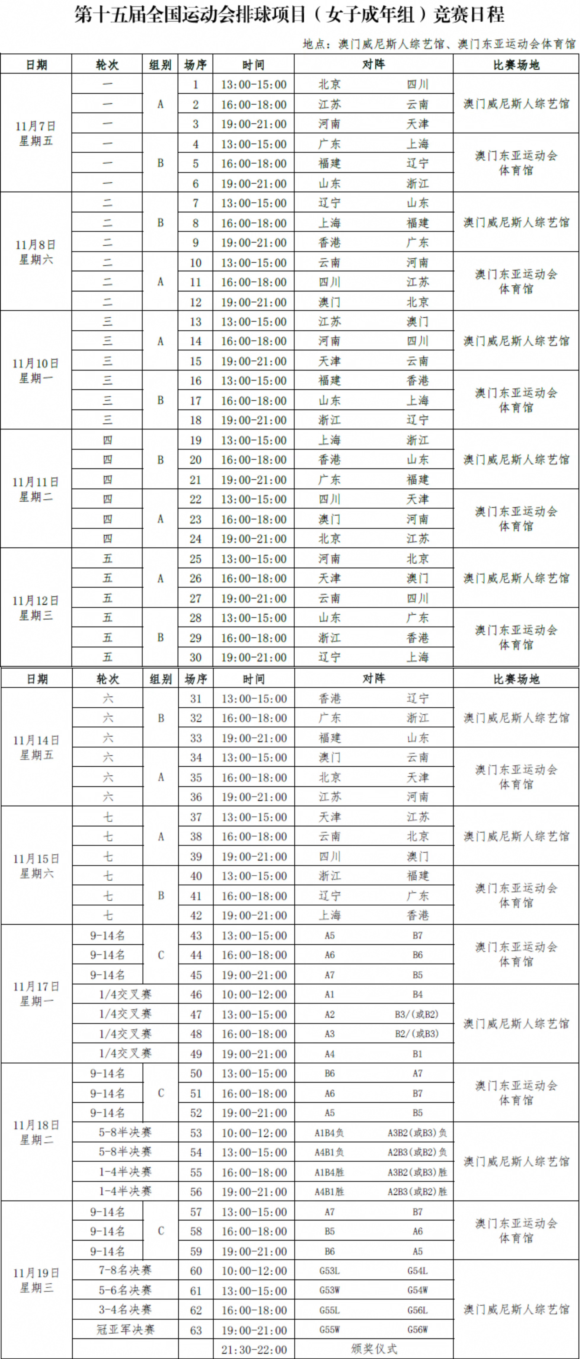 2025年全运会女排成年组详细赛程表已经出来[打call]