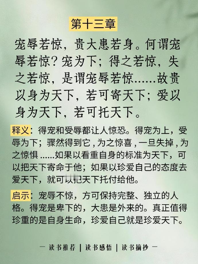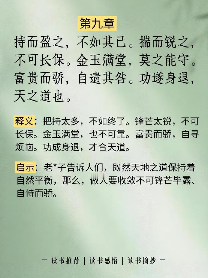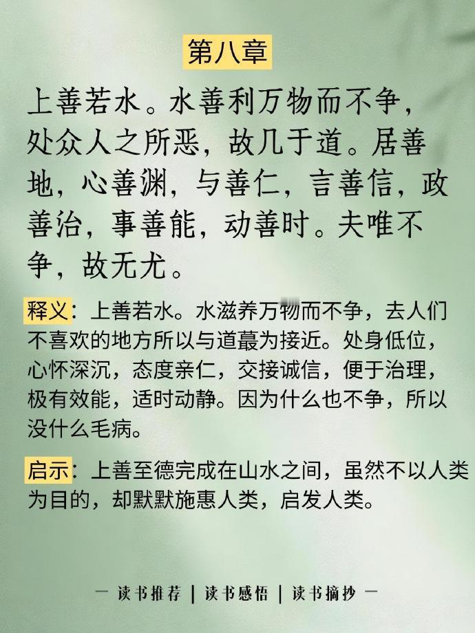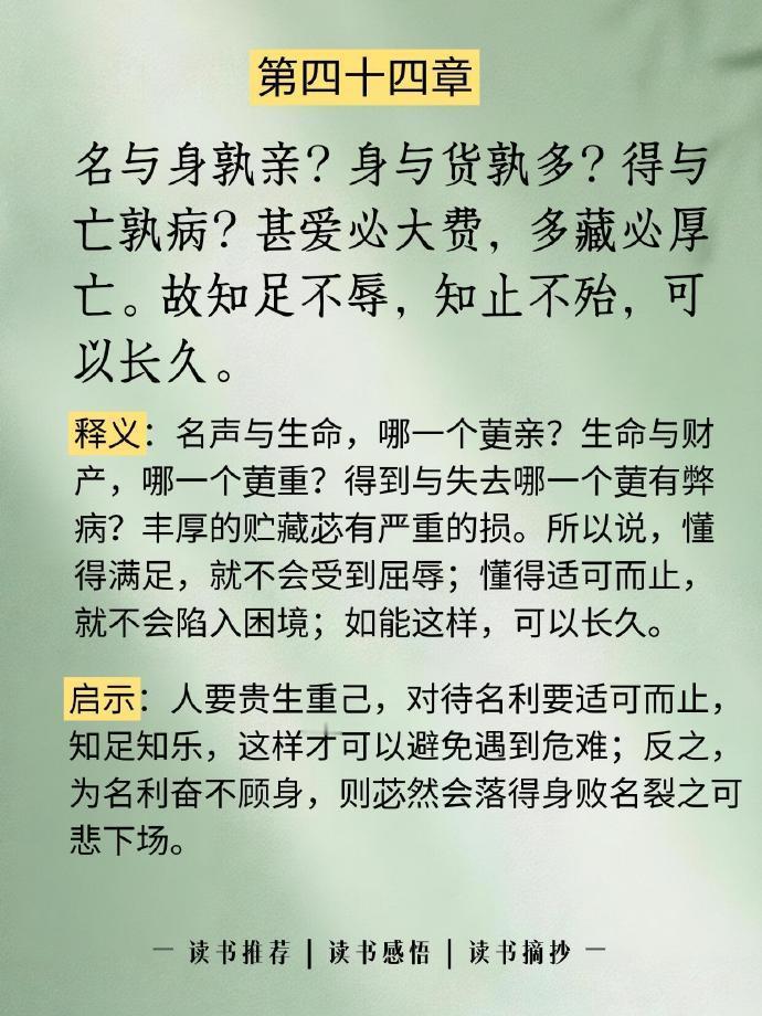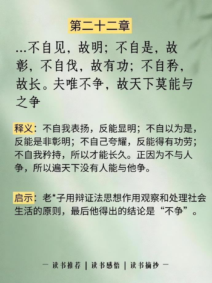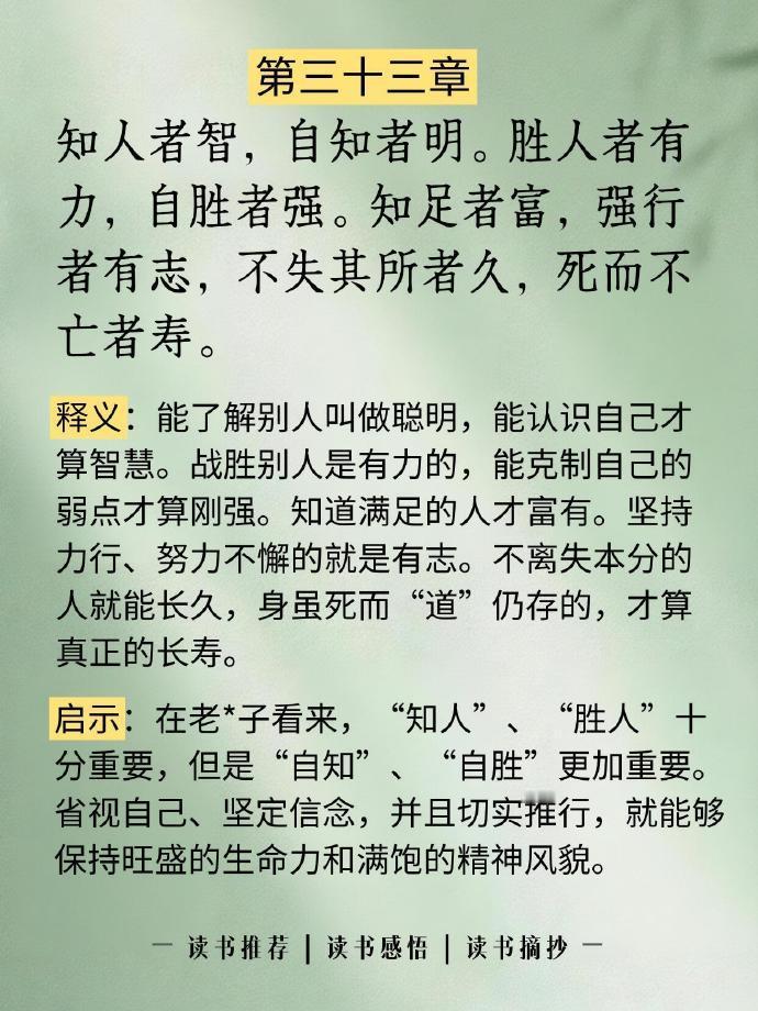 《道德经》10段最具经典的语录,每一句都道尽了人生智慧。比如,知人者智,自知者明。胜人者有力,自胜者强。知足者富,强行者有志,不失其所者久,死而不亡者寿。 释义:能了解别人叫做聪明,能认识自己才算智慧。战胜别人是有力的,能克制自己的弱点才算刚强。知道满足的人才富有。坚持力行、努力不懈的就是有志。不离失本分的人就能长久,身虽死而“道”仍存的,才算真正的长寿。 这段话,周少建议大家保存下来,特别是感到迷茫时,没事拿出来多读一读,多品一品,你会发现越品越有味,能把其中的智慧悟透,在事业上更能助你更上一层楼。#寻美三湘##长沙新朋友# 道德经易经山海经小蓝本中华国学经典精粹国学经典读本