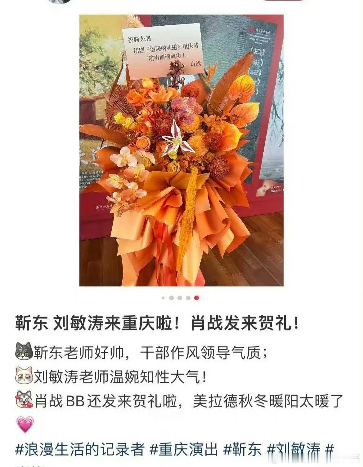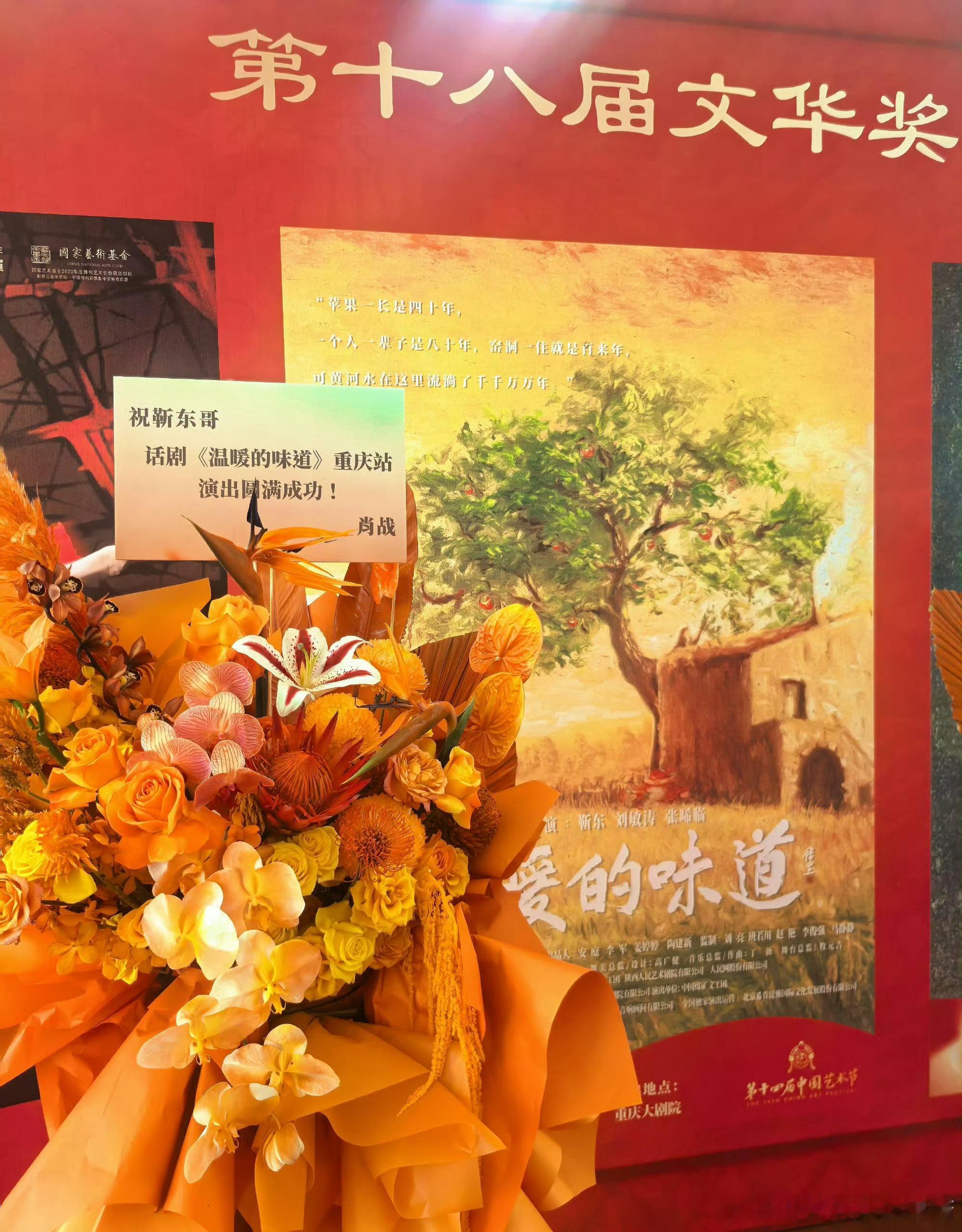 肖战给靳东话剧《温暖的味道》重庆站送了花篮,㊗️演出圆满成功