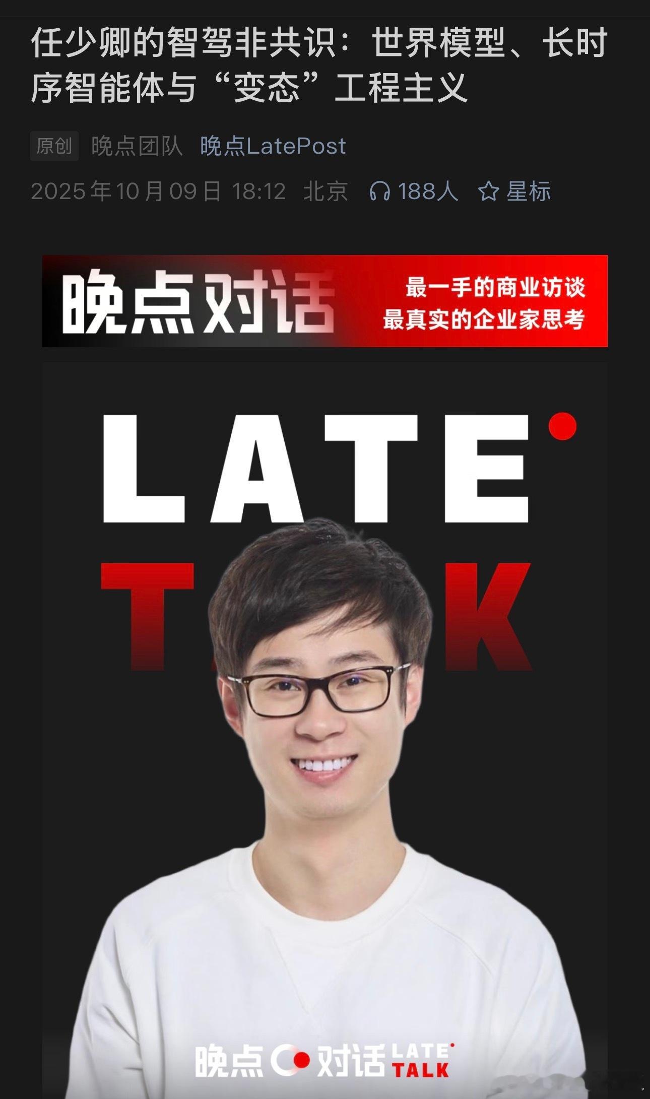 • 车是“具身智能”的最佳场景,世界模型是其核心能力栈:任少卿认为“车本身就是具身智能”(除了没腿,能移动、能感知、能交互),而世界模型正是为“具身智能”量身打造的——它通过真实车辆的海量动态数据(摄像头、雷达记录的路况)持续学习,不断优化对物理世界的理解,这种“从真实场景中学习、再应用到真实场景”的能力,是其他AGI场景(如机器人)难以快速复制的,也让世界模型成为智能驾驶通向AGI的唯一可行路径。
