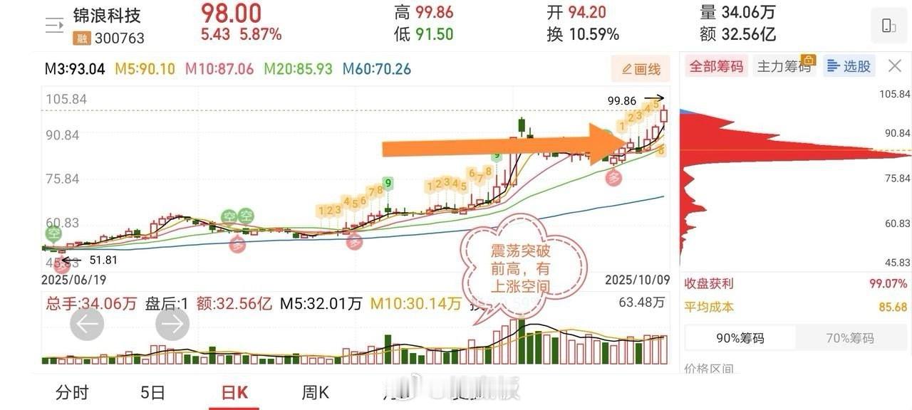 锦浪科技:震荡突破前高,谨防回踩,低吸为主,概念加持,有上涨预期。可以关注