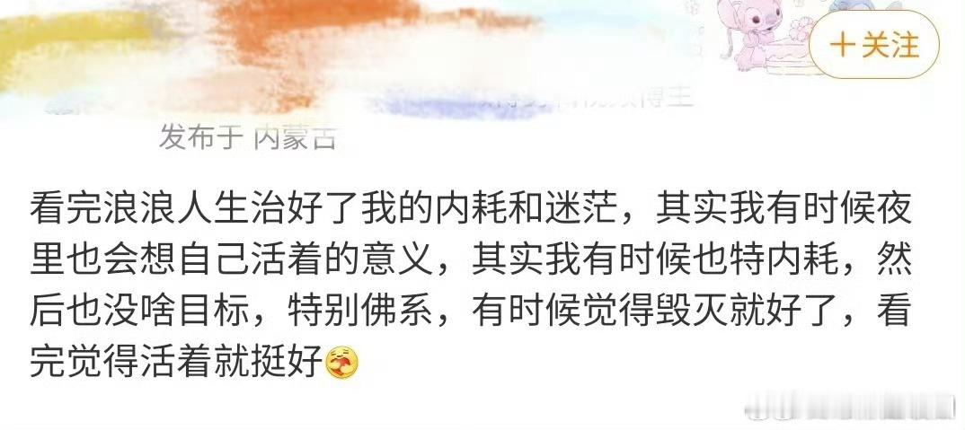 浪浪人生治愈了多少人啊!看完了浪浪人生告别的精神内耗。现在才明白,生命的重量不是由成就来衡量的[抱抱]