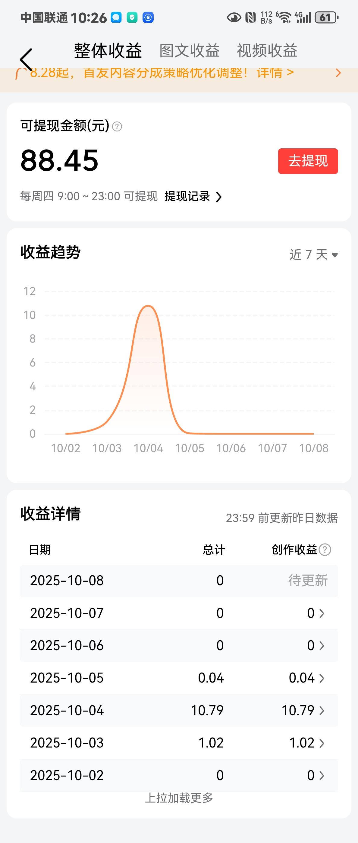 这样的收益,几乎让我没有了写下去的信心, 头条是一个让人欢喜让人忧的空间, 如同
