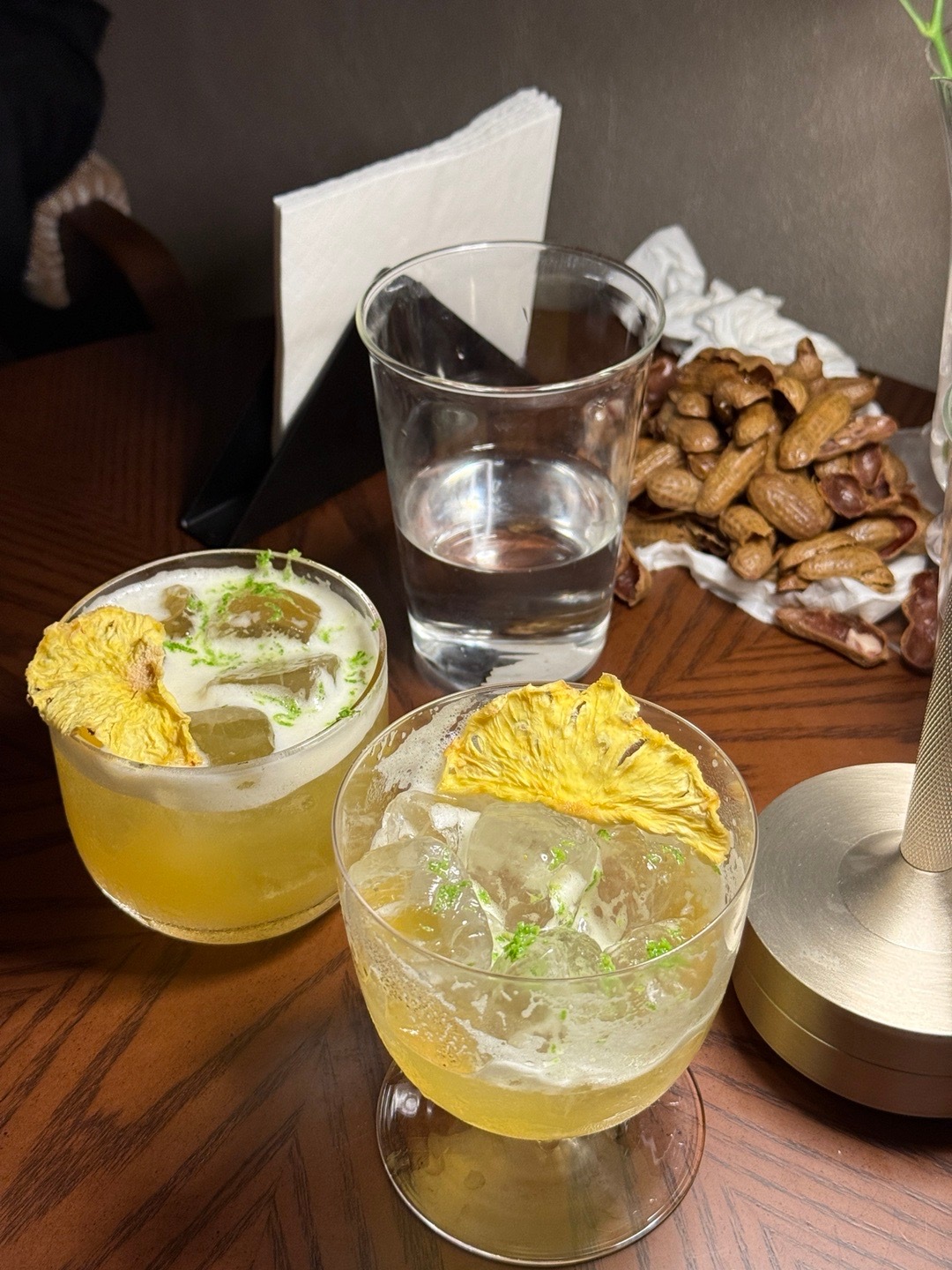 晚上好来喝调酒了🍻菠萝这个好好喝一个含酒精一个不含每次都点一样一杯