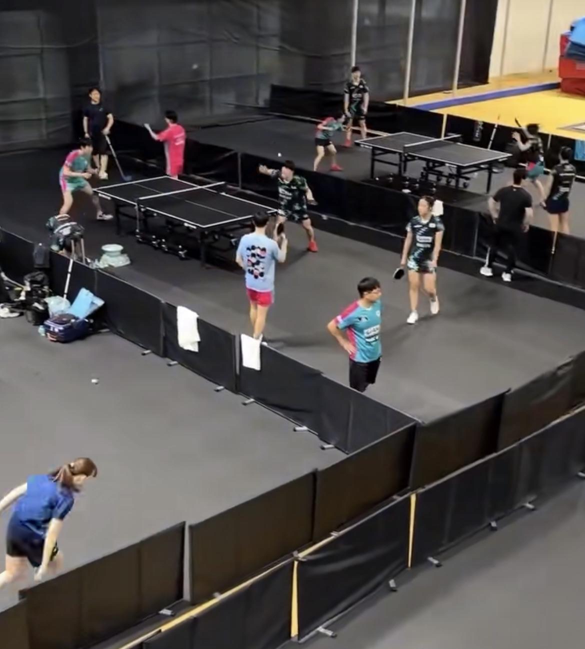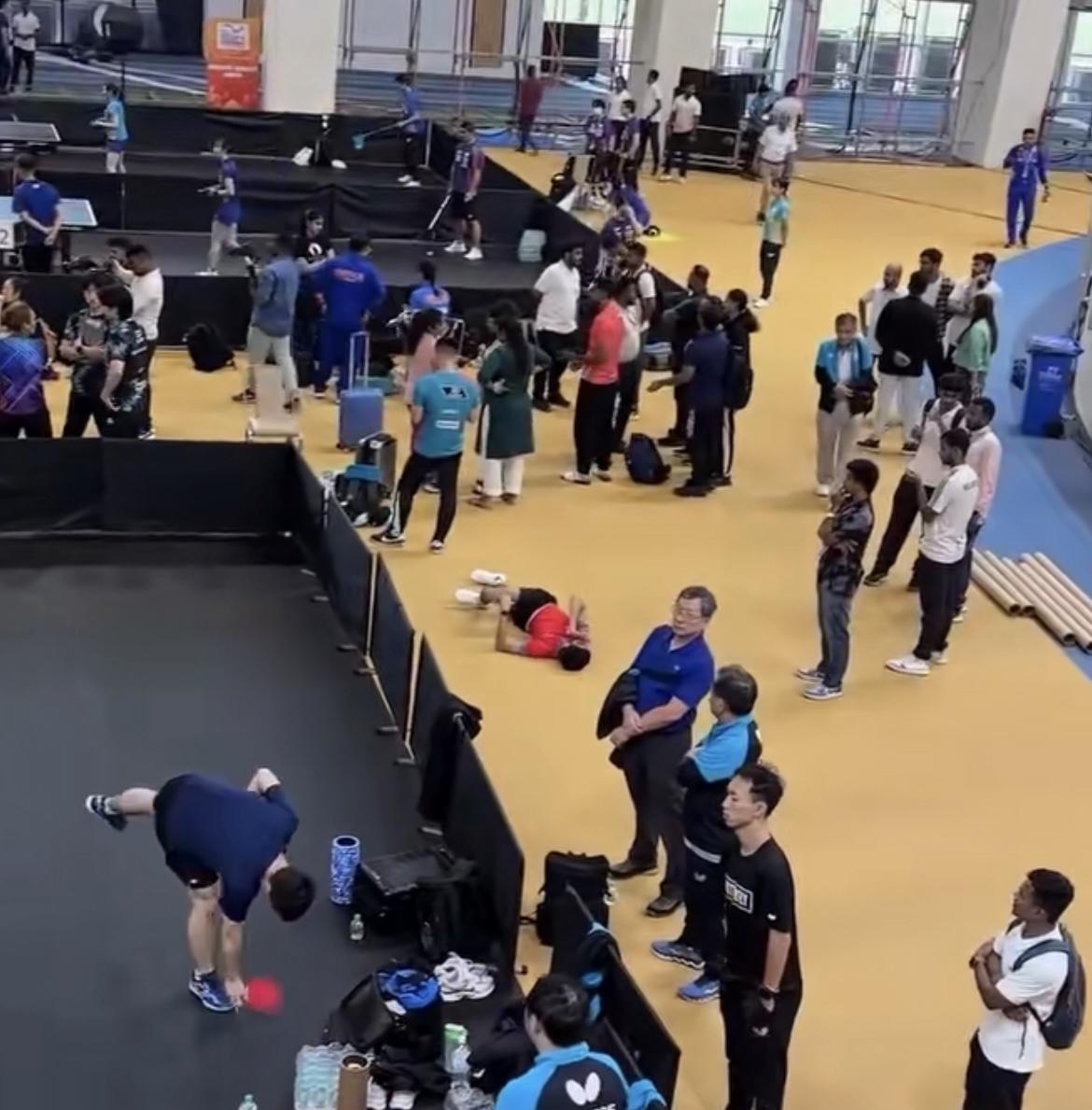 都在吐槽印度的空气不好,场馆环境不好,硬件不好。看了日本,韩国,中国台北,印度队的训练视频,觉得场馆还可以的,很大很宽敞,环境也不差。仔细看还有个红衣服的小哥哥,训练累了直接躺地上休息了。地上也挺干净的,要不也不会躺地上了。