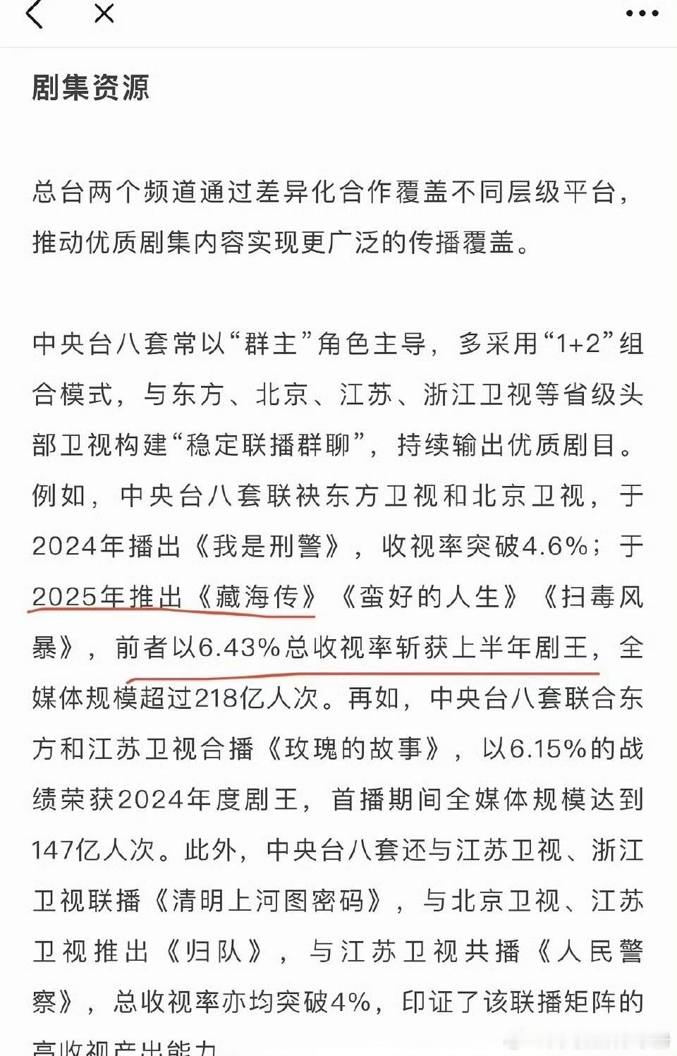 CSM刚官方发布提到2025年肖战《藏海传》以6.43%总收视率获上半年剧王,什么水平?