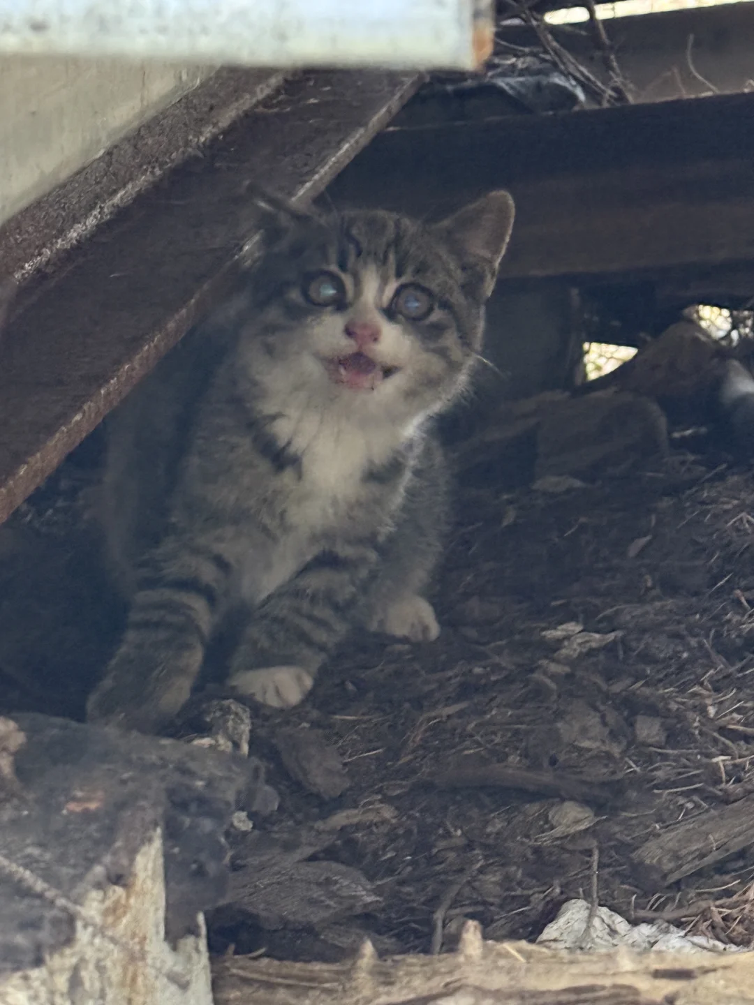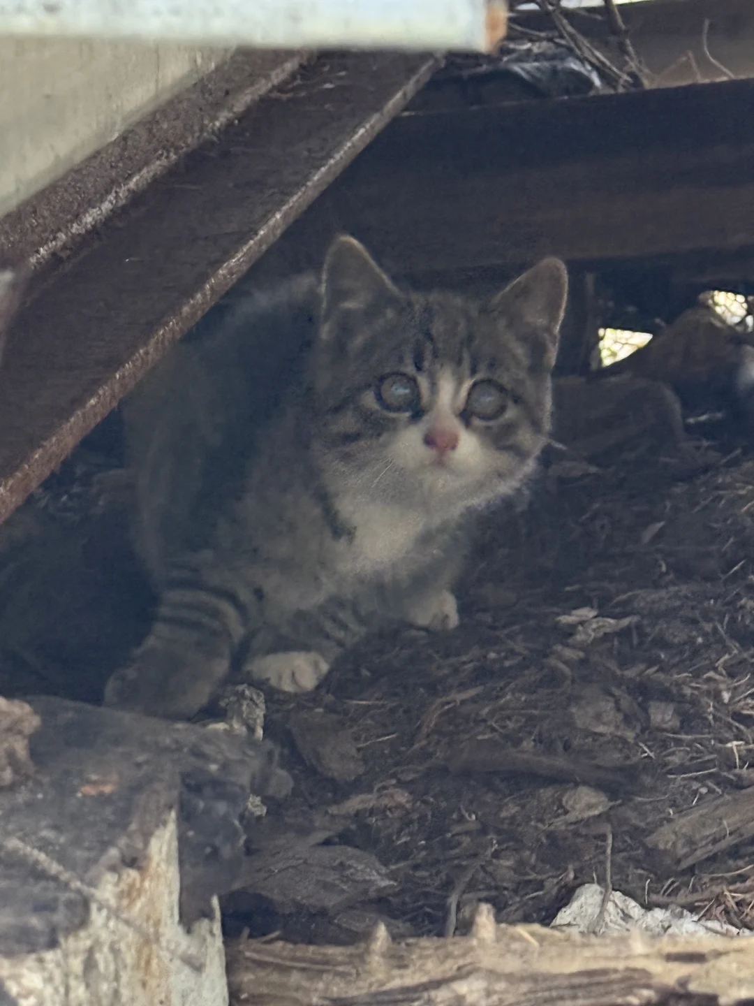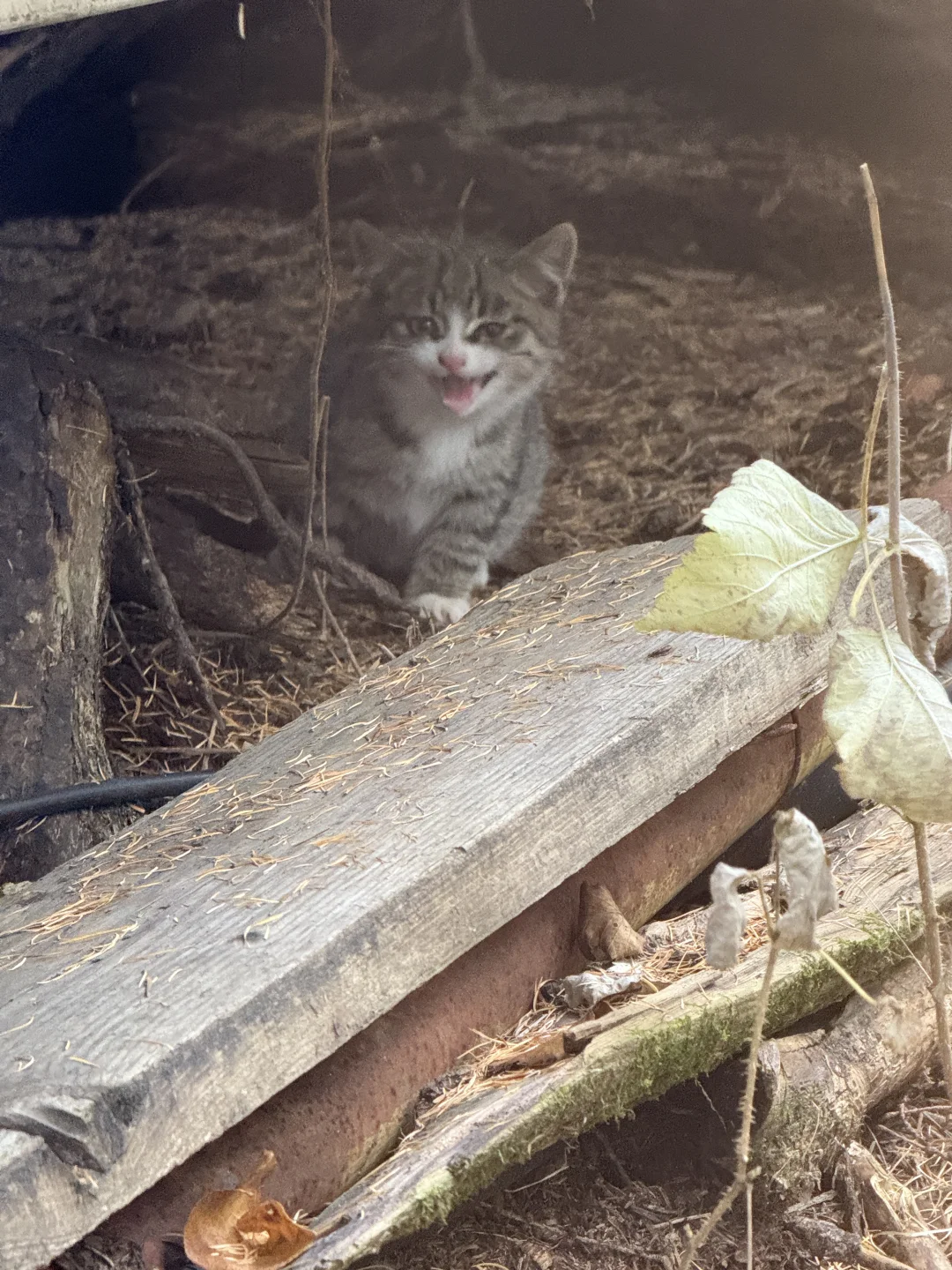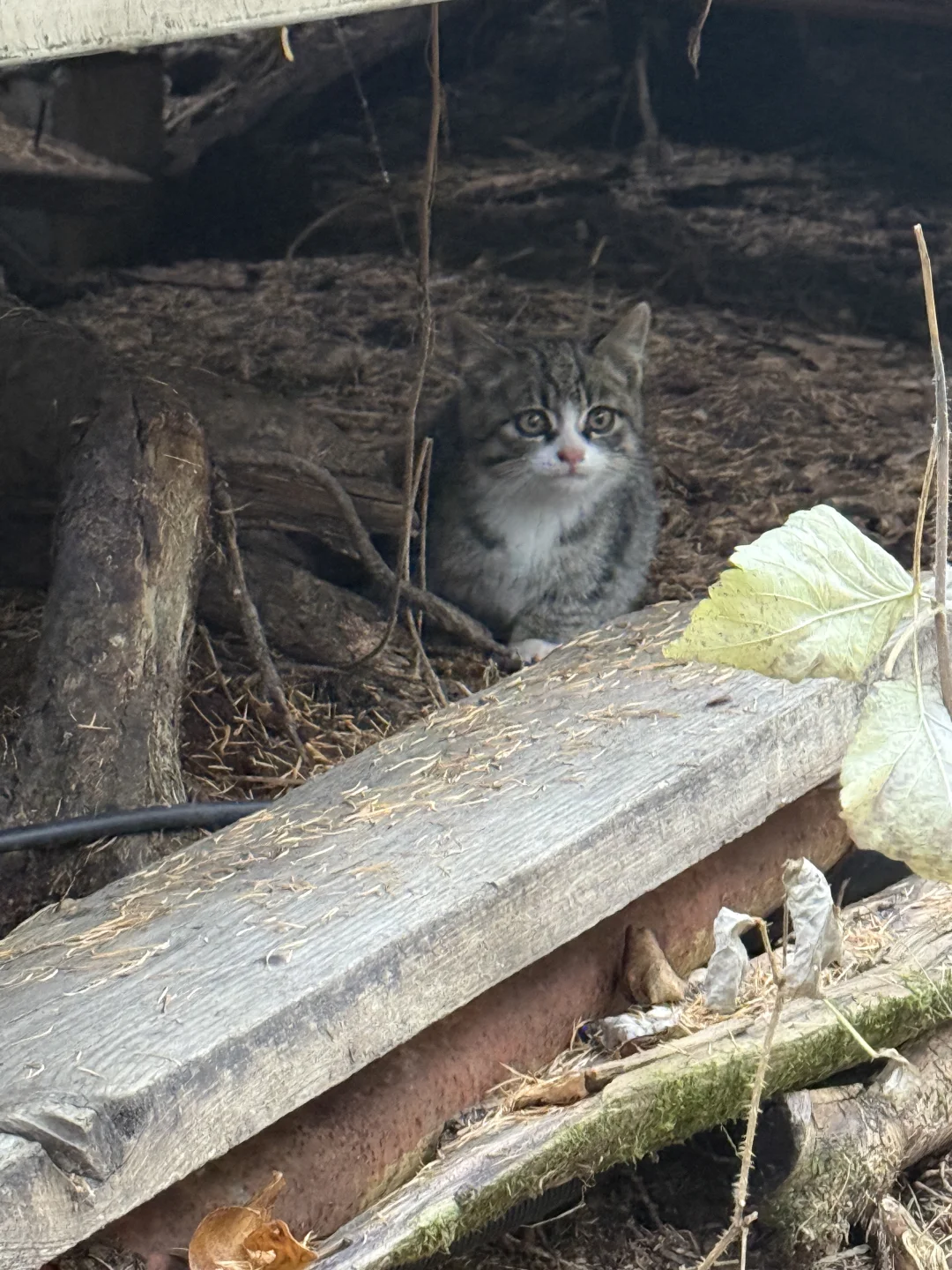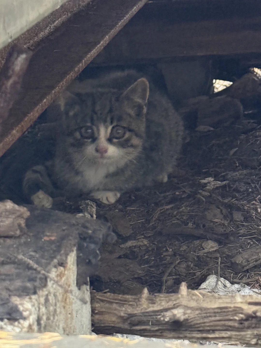 遇到一只右脚受伤的小猫,躲在谷底森林的栈道底下,尝试抓了半个小时也没有成功[哭惹R]降温了很难过冬了,如何是好?