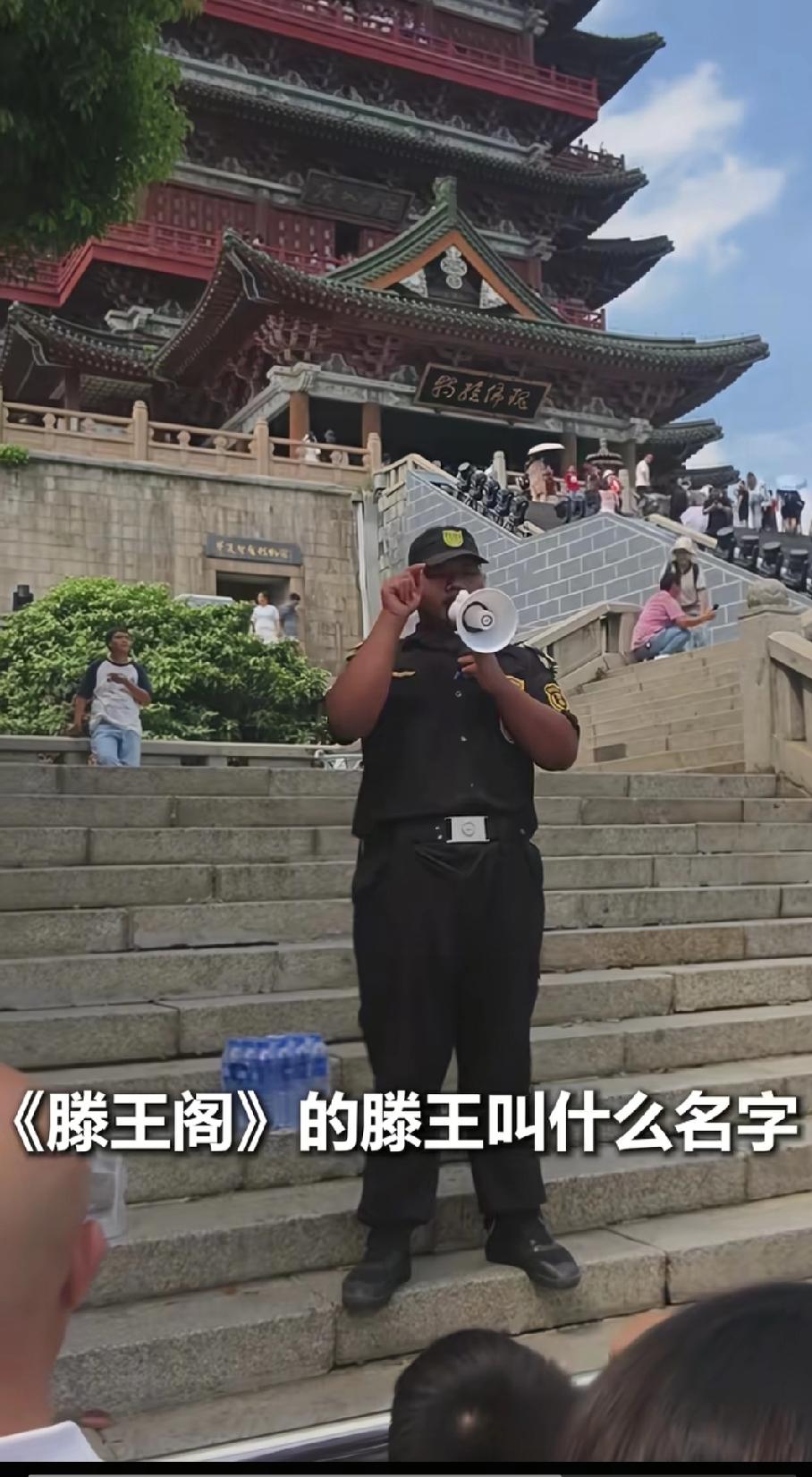 “保安火了,上人民日报了!”10月2日,江西南昌腾王阁景区人太多,许多买了票的游客被挡在高高的台阶下面,人们怨声载道。就在这个时候,一名保安人员站出来,对游客说:“这是我们工作的失误,但是上面已经人挤人,为了大家安全,只得阶段限流。现在我陪大家晒太阳,我也不躲在阴处,好吧!”  国庆长假第二天,滕王阁景区早就挤满了人。从各地来的游客揣着门票,想趁着假期感受 “落霞与孤鹜齐飞” 的意境,可到了景区入口才发现,高高的台阶下面被拦了起来,工作人员说上面已经人挤人,为了安全必须阶段限流。 这一下,买了票却进不去的游客们炸了锅,大太阳晒得人皮肤发烫,手里的矿泉水喝了大半,队伍却没往前挪一步,心里的火气跟着气温一起往上窜。 有人举着门票跟工作人员理论,说 “早知道限流怎么不提前说”;有人掏出手机拍照,嘴里念叨着 “这趟来得太闹心”;还有带着孩子的家长,抱着哭闹的孩子,急得直跺脚。现场乱哄哄的,几个工作人员围着解释,声音都快被游客的抱怨盖过去了,情况没好转反而更紧张。 穿深色制服的保安原本在旁边维持秩序,看着游客们越来越焦躁,他放下手里的对讲机,径直走到人群前面。他没急着解释,先对着大家鞠了个躬,然后才开口说话,承认是工作没做到位,没提前做好限流通知让大家受了委屈。 接着他指了指旁边的阴凉处,又指了指自己脚下的空地,说为了让大家放心,他会陪着大家一起等,大家晒多久太阳,他就晒多久,绝不躲进阴凉里。 说完,他真的就站在太阳底下,双手背在身后,偶尔还会帮身边的游客递瓶水,或者跟带孩子的家长聊两句,缓解他们的情绪。正午的太阳有多烈?地面被晒得发烫,穿着鞋子都能感觉到热气往上冒,保安的额头上很快就渗出了汗珠,顺着脸颊往下淌,制服的后背也渐渐被汗水浸湿,可他没动一下,始终站在原地。 游客们看着站在太阳下的保安,原本的火气慢慢消了。有人主动说 “算了,也是为了安全”,有人还掏出纸巾想递给保安擦汗。后来景区调整了限流节奏,分批次引导游客进入,队伍慢慢动了起来。 等最后一批游客跟着保安往景区里走时,有人拍下了保安后背湿透的背影,发到了网上,很快就被大量转发,连人民日报都转发了这条内容,称赞这位保安有担当。 后来有人问起这位保安,他说自己在滕王阁景区工作好几年了,国庆期间每天要从早上六点忙到晚上十点,维持秩序、解答游客疑问是常事。 那天看到游客们着急,他也没多想,就觉得应该跟大家站在一起,让大家感受到诚意。他没想到自己会 “火”,只觉得这是自己该做的事,让游客们能开心游玩,比什么都重要。 对此,你们怎么看?欢迎留言评论~