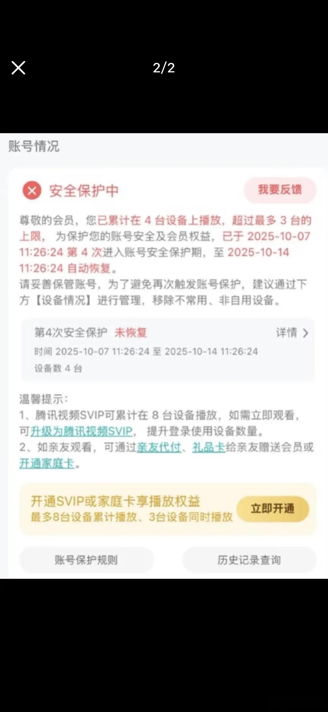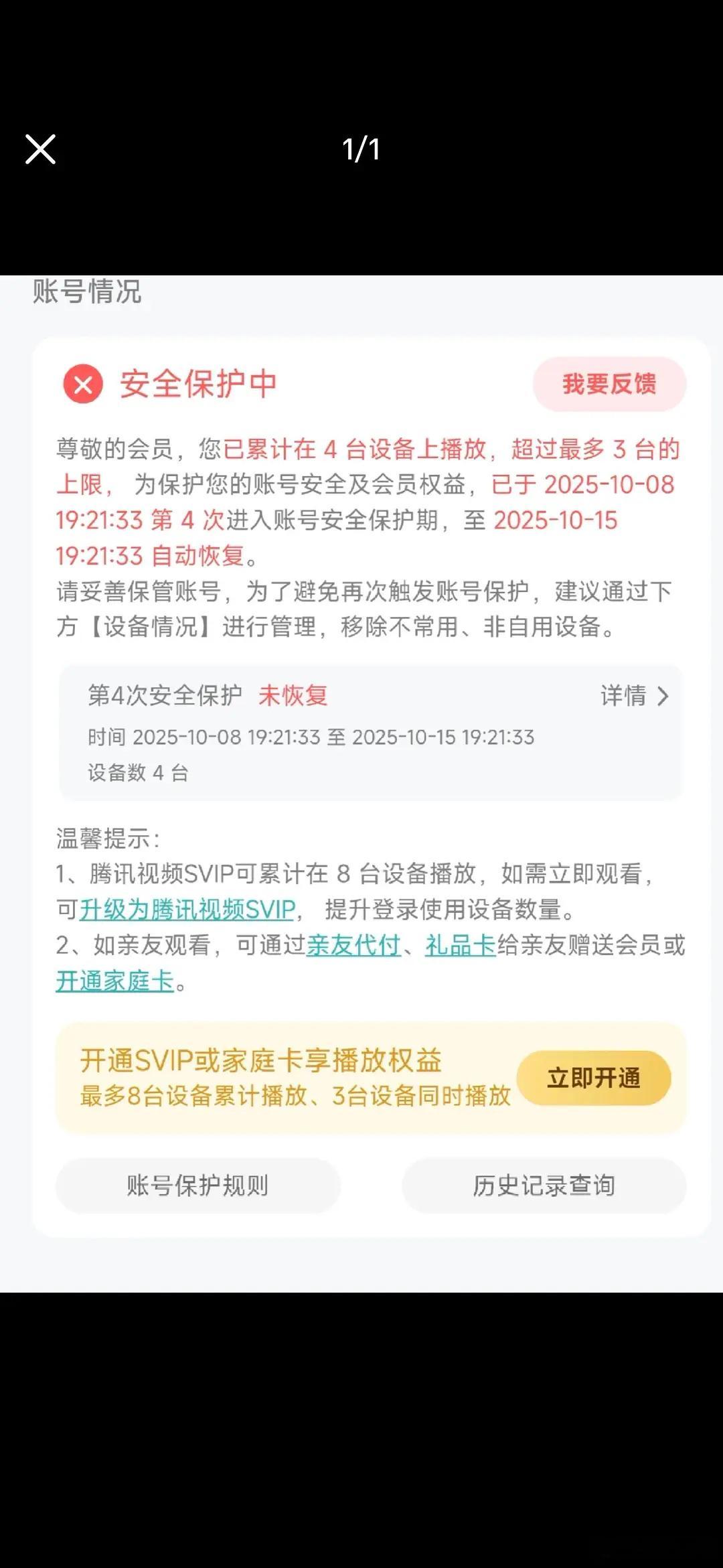 有网友称腾讯视频VIP超限新规曝光,多登1台设备禁看7天……..天要塌了