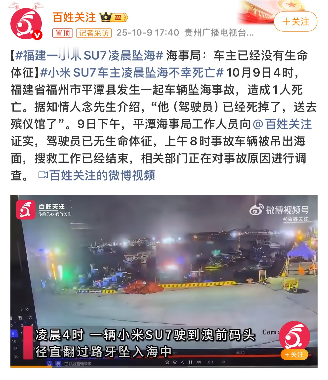 各位小伙伴们外出开车一定要注意安全!无论是什么车开车一定要多观察多观察。驾驶员的具体情况没有被披露🙏小米SU7车主凌晨坠海不幸死亡