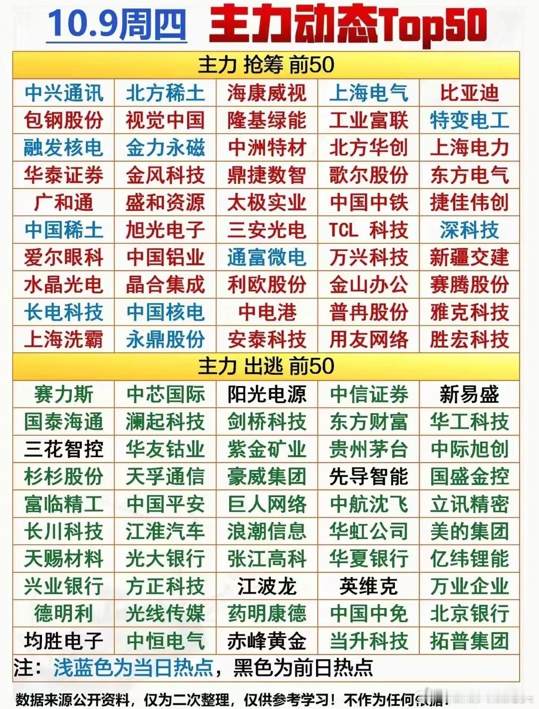 10月9日主力资金净流入前二1十出炉,中兴通讯获67.26亿主力净买入,涨幅9.51%;北方稀土、海康威视等也获大额净流入,多股涨幅亮眼,市场交易热度较高。