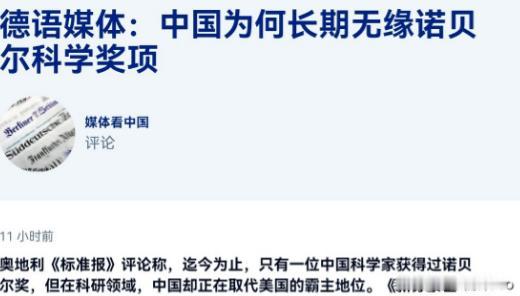 罕见!在中国科学家再次无缘诺贝尔最高奖项之后,德媒表示,以诺奖看待中国,这是对中国巨大的低错估,中国事实上正在成为欧洲学习和研究的对象。 10月8日,德国之声刊文表示,迄今为止,只有一位中国科学家获得过诺贝尔奖,但在科研领域,中国却正在取代美国的霸主地位。德媒表示,某项科研获得突破几十年之后,往往才能获得诺贝尔奖。 德媒这话算是点破了不少人没看清的事儿,盯着诺奖那枚牌子评判中国科研,本身就跑偏了方向。诺贝尔当初设奖的时候,本来是想给 “前一年” 做出突出贡献的人,可现在这规矩早成了摆设。 现在科学家做出突破到拿诺奖,平均得等二三十年,化学奖有时候得熬到三十年开外,比几十年前翻了一倍还多。 不是成果不够格,是诺奖本身就追不上现在科技发展的速度,加上每年值得表彰的突破越来越多,评委们只能往回翻旧账,那些被时间验证过的 “老成果” 才容易入选。 咱们国家目前也就一位科学家拿过诺奖,可这压根说明不了问题。毕竟现在中国在科研领域的架势,早不是靠一两枚奖牌定义的了。德媒直接点出来,中国正在取代美国的霸主地位,这话可不是空口说的。 咱们每年砸在科研上的钱已经超过 3.6 万亿,投入强度比欧盟国家平均水平还高,快赶上那些老牌发达国家的水准了。 这些钱没白花,近年各种前沿突破不是零散冒头,是成体系地涌现,从深地钻探到太空探测,从信息存储到量子物理,能打的领域越来越多。 诺奖评不上,无非是这些突破大多是近几年才冒头的,还没熬到诺奖的 “考核期”。要是按诺奖的滞后节奏,说不定二三十年之后,咱们能集中拿一波奖。可现在的科研竞争,谁还等得起二三十年? 欧洲那边早就看清了门道,不再盯着诺奖名单看中国了。以前欧洲还当咱们是学生,技术都是单向从他们那流过来,现在不少领域反过来要学咱们的路数。 他们自己也承认,之前低估了中国的创新能力,以为咱们只会模仿,没想到现在在 AI、数字经济、新能源这些领域,咱们已经跑到了前面。 欧洲企业现在也在调整策略,有的想借鉴咱们的技术转让办法,有的干脆吸引中国投资,就为了学新能源和电池领域的本事。 连他们的智库都直言,欧盟现在对中国科技的态度有点被动防御,可光防御没用,还得学人家的长处。 这跟以前的光景完全反过来了。二十年前中国刚加入世贸的时候,还得靠开放市场换欧洲技术,现在技术流动开始反向走了。 西班牙在新能源领域主动找中国企业合作,就是想抄作业;德国的一些大企业也在琢磨咱们的产学研结合模式,想把中国当成创新的源头。他们的分析师都坦言,再按老眼光看中国可不行,中长期下来,不学着点就跟不上了。 这种转变不是凭空来的,是咱们一点点拼出来的 —— 科研投入逐年涨,2024 年投入强度已经到了 2.68%,成果转化速度也快,那些刷新世界纪录的技术,往往很快就能落地到产业里。 美国的科研霸主地位确实在松动。以前全球科研看美国脸色,现在中国在不少前沿领域能跟他们掰手腕,甚至某些地方已经超车。诺奖那套老标准,早就跟不上全球科研格局的变化了。 它评不上,不代表咱们的科研不行,反倒是德媒看得明白,用诺奖来衡量中国,本身就是一种低水平的判断。 毕竟诺奖现在连及时表彰当下的顶尖成果都做不到,有研究说,上世纪上半叶,三十多岁拿诺奖的人一抓一大把。 现在想这个年纪得奖基本不可能,很多科学家熬到退休都等不到,甚至有人没等到颁奖就过世了,诺奖还规定不能追授,这就更没法精准反映当下的科研水平。 欧洲现在的行动已经说明问题了,真正的科技实力不是靠奖项背书的,是看谁能成为别人学习的目标。咱们现在就是这样,闷头搞突破,经费跟上,成果落地,不知不觉就成了欧洲研究的对象。 那些还盯着诺奖说三道四的人,说白了是没看懂现在的科技版图已经变了。诺奖可以慢慢等,可中国科研的脚步不会停,等个二三十年又怎样,现在的实力摆在这,欧洲都在学,这比拿个奖更实在。 其实不用纠结诺奖给不给面子,科研这事儿拼的是长线。咱们每年持续砸钱,持续出成果,就算现在诺奖名单上没名字,可全球科研圈的人都清楚中国的分量。 欧洲已经用实际行动表态了,他们都开始研究咱们的路数,这就比任何奖项都有说服力。 德媒说这是低错估,一点没夸张,用一个滞后几十年的奖项衡量一个正在高速崛起的科研大国,本身就是找错了尺子。 往后咱们接着按自己的节奏来,经费续上,突破不停,说不定再过十年,诺奖反倒要琢磨怎么跟上中国的科研速度了。