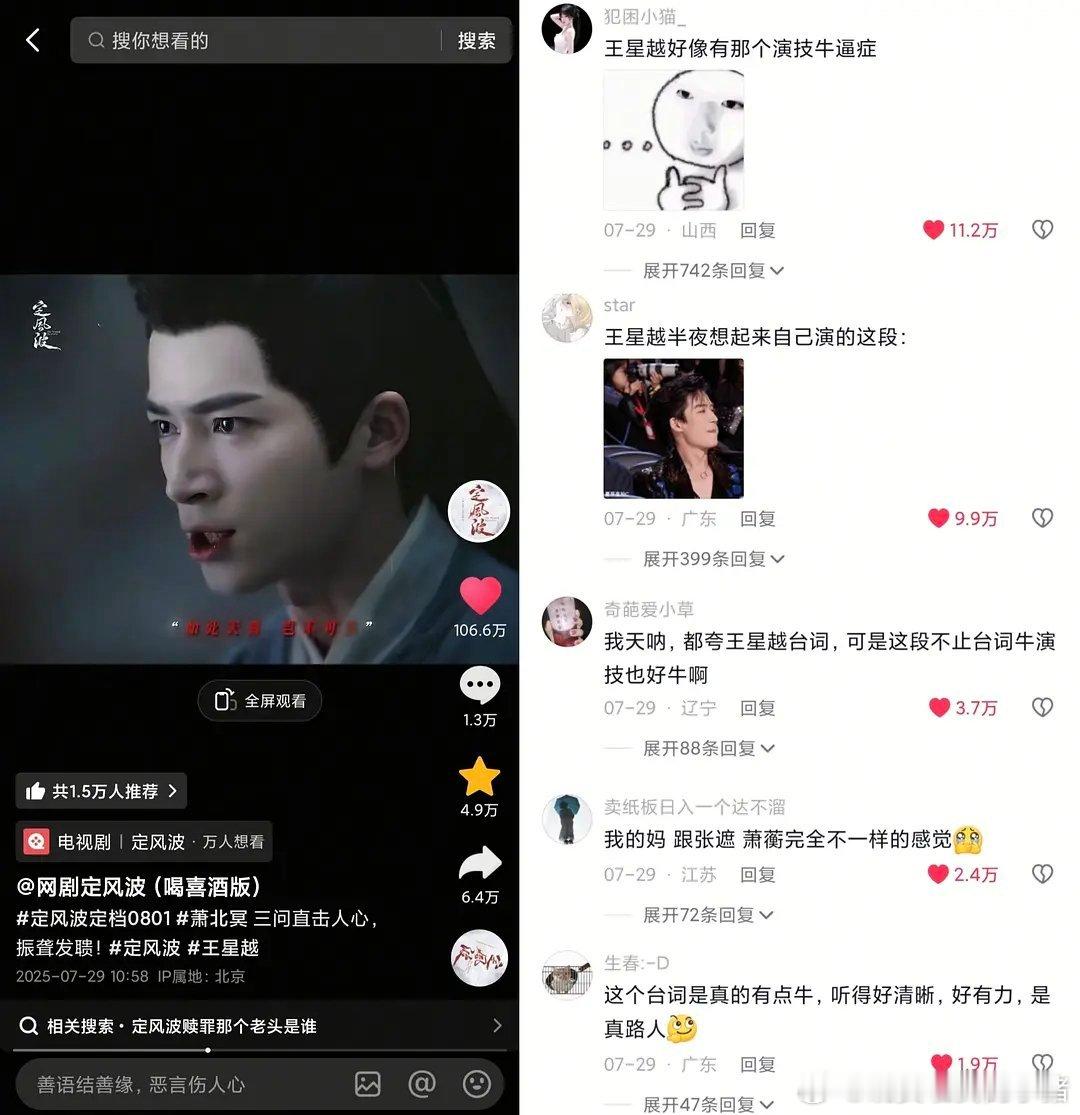 王星越定风波播出前后至今超 Like 翻倍增长,剧宣视频唯一高赞百万赞就是王星越的演技,内赞评论也都是万赞,新剧和一群实力派演员飙戏,妥妥的上坡路[yeah][yeah]