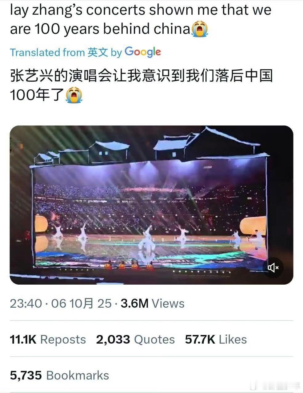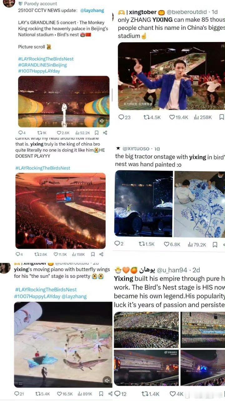 张艺兴鸟巢演唱会海内外大出圈 张艺兴鸟巢演唱会的全球热度实至名归!从舞台呈现到文化内核,每一处都尽显匠心,海内外万转万赞的刷屏,既是对他实力的认可,更是对中国文化魅力的追捧,这样的音乐人,值得所有人掌声!