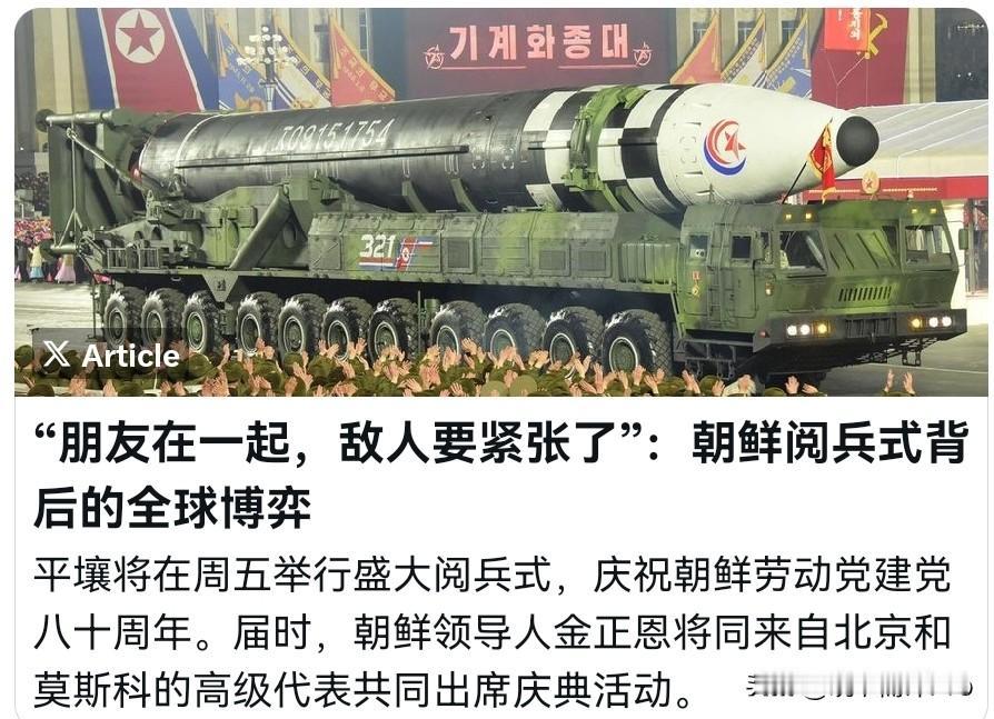 德媒也不得不承认,朝鲜的外交取得巨大成功,德媒认为,朝鲜的国际地位有了明显提升!10月9日,德媒刊文表示,朝鲜首都平壤将再度举行声势浩大的阅兵式,数万士兵列队穿过市中心,以展示该国各类先进的武器装备。德媒表示,中国,俄罗斯,越南等国都派出非常高级别的官员出席朝鲜举行的盛大活动,朝鲜的国际影响力到达了顶点。 德媒表示,果断出兵,在此背景下,朝鲜尤其成了俄罗斯至关重要的伙伴。中美博弈,中国也借重朝鲜增加对美筹码,朝鲜领导人金正恩的地位从未像现在这样牢固,他也从未有过如此大的国际影响力。而与此同时,让美国及西方感到沮丧的是,由于有中俄做背书,美国对朝鲜的制裁越发难以发挥威力。而朝鲜弃核不仅无望,反而现在朝鲜正在寻求美国承认朝鲜拥核的既定事实。 这样的局面,让朝鲜领导人对于朝鲜政权的稳固有了前所未有的信心。说实话,让西方媒体承认朝鲜外交取得巨大成功,朝鲜国际影响力获得大幅度提升,这无疑是非常的罕见的。不过,不得不承认的是,德媒说的完全是事实。美国意欲将朝鲜半岛作为施加遏制,破坏我们周边稳定局势的跳板,朝鲜则明智的顺势与我们加深关系,让美国无机可趁。 而出兵帮助俄罗斯,朝鲜不仅换来了俄朝同盟关系,而且还从俄罗斯那里获得了不少的军事技术,以及急需的石油,粮食等等。现在朝鲜不仅拥有核武器,而且获得了中俄两个大国的支持,这样的外交手笔,无疑极大的确保了朝鲜的国家安全。在这样的情况下,美国当然不敢对朝鲜有非分之想。很显然,朝鲜领导人的地位是越来越稳固了,而这可能是让美西方感到非常沮丧的一个事实。