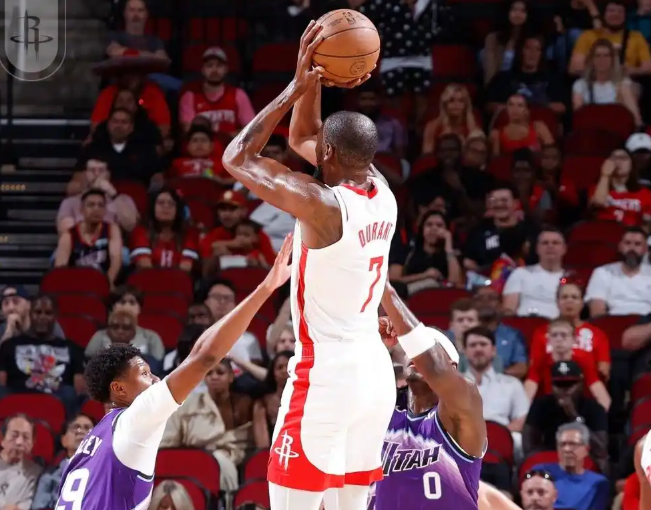 进入下半场的较量,双方继续展开对攻节奏,爵士年轻力量敢打敢拼,第五顺位的贝利尽显天赋,里突外投是格外亮眼,全队多点开花,始终没被甩开差距。火箭不甘示弱,一次次回应守住优势,杜兰特手感持续回升,单节弹无虚发,四投全中独得12分。第三节两队单节战成40平,依旧相差六分。