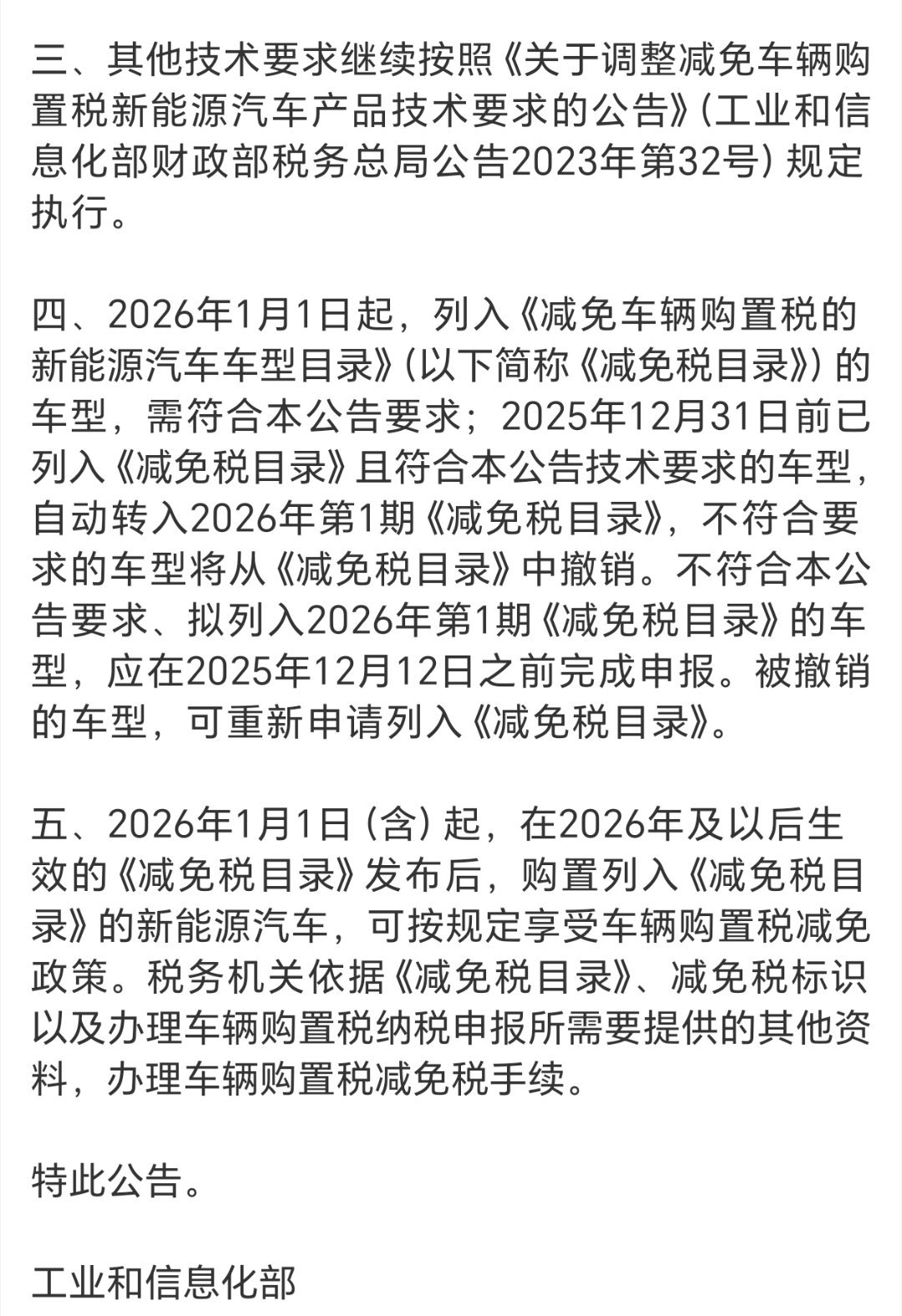 新能源车子明年开始,购置税这一块的减免降低了,最高不超过1.5万之外,对于车子的一些规格也做了更多的要求。这个新公告里面,插混车型要符合购置税减免的,纯电里程要不低于100公里,另外能耗也有相应的要求,根据不同的整备质量对应不同比例。