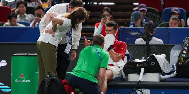第二盘比赛末段,场上发生了一个小插曲,“梅总”大腿抽筋了,他几乎是站着打完最后两局。经过局间短暂休息,医护人员紧急处理后,“梅总”咬牙坚持,才得以继续留在上海!