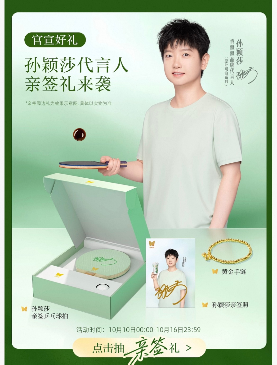 孙颖莎最新代言香飘飘即将官宣!线下门店也已经开始布置孙颖莎相关宣传海报!这次竟