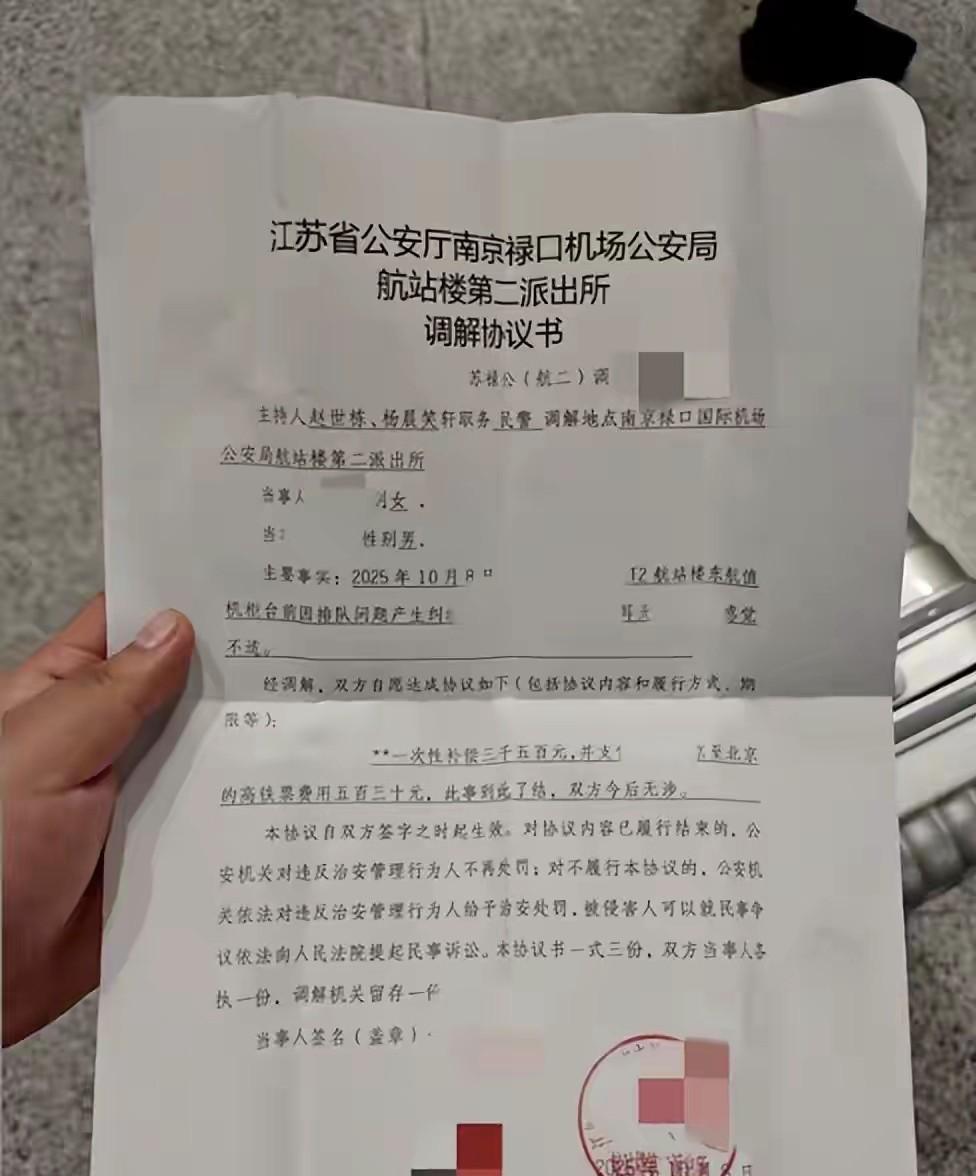 机场插队打人的时候嚣张跋扈 报警要赔偿3500的时候秒怂哭穷 10月8号南京禄口