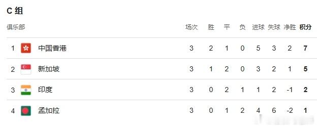至此,中国香港2胜1平积7分,暂列小组第1。而只有排名小组第1的队伍,才能晋级2027年亚洲杯正赛。