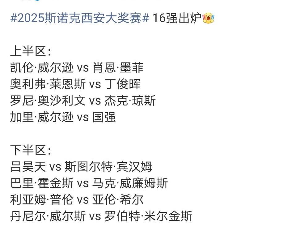 连续两站比赛八强要全军覆没吗?上一站英国公开赛咱们也是3个16强。 上半区太强了吧,丁主任陷入死亡半区,想要晋级决赛得通过囧哥或墨菲,然后还有奥沙利文。