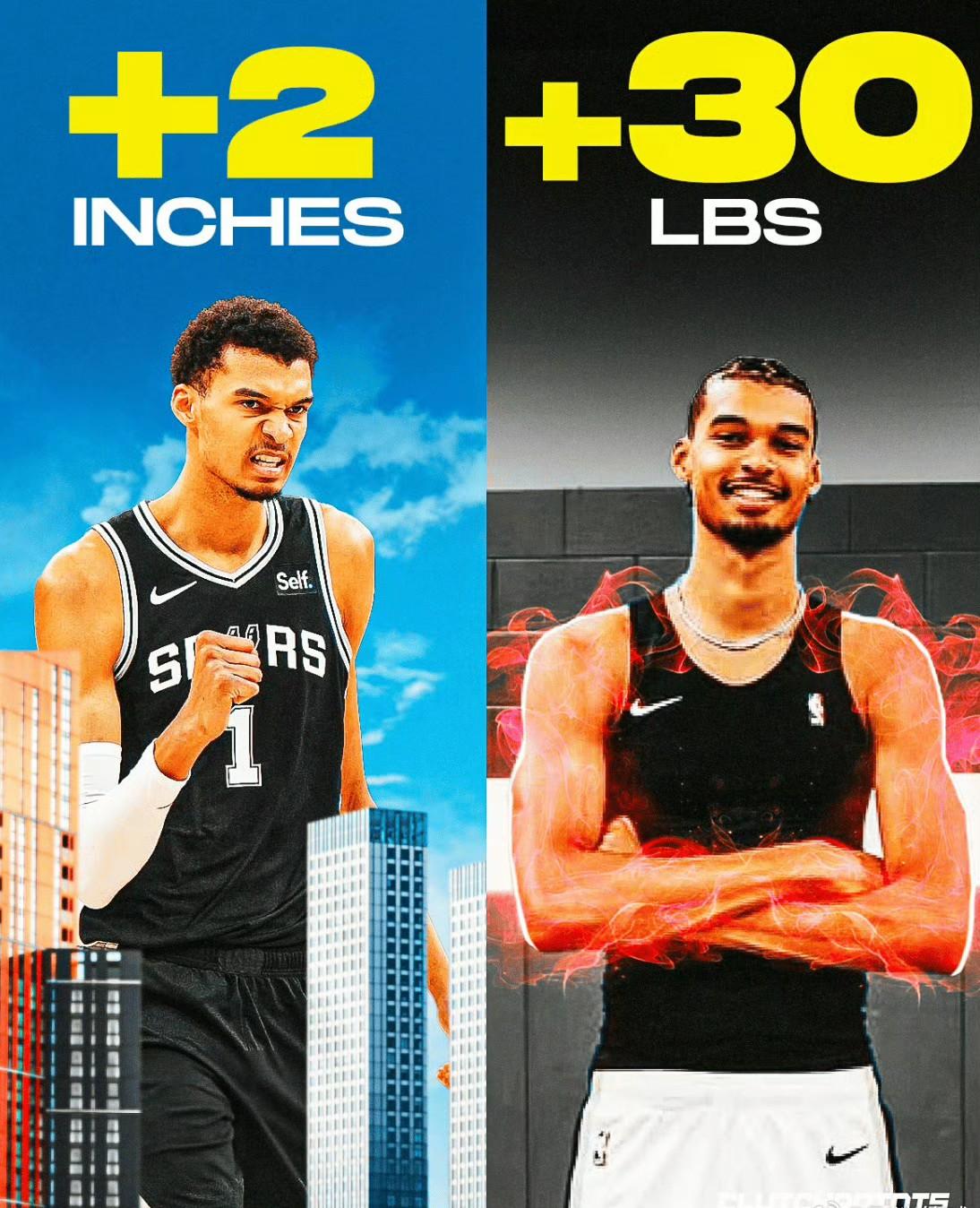 自从在少林特训后,文班亚马相比上赛季又长高了5厘米,增重13.6公斤。 上赛季2.21米,现在2.26米。 文班亚马姐姐也是个“怪兽”,她的女篮欧洲杯首秀,27分6篮板3助攻3抢断4三分