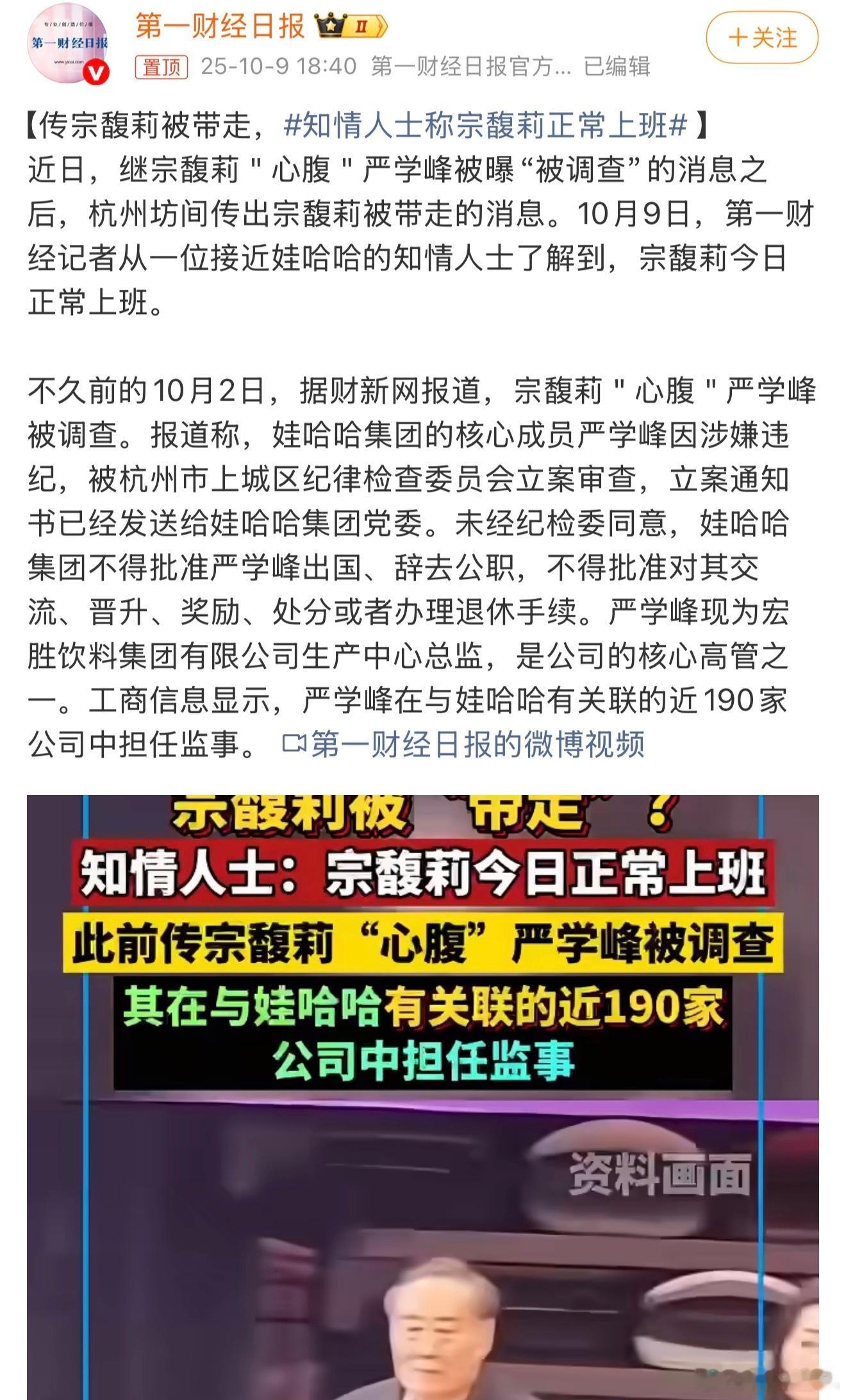 知情人士称宗馥莉正常上班一会儿传宗馥莉被带走,一会儿传正常上班,我说网友真是闲的,这么关心人家资本家大老板,还不如关心自己月薪啥时候涨。