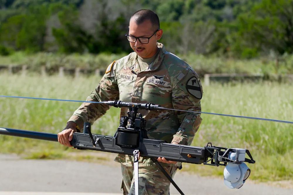 美军也在研发侦查型无人机用于战场情报收集。 2025年9月25日,隶属于第一骑兵师第二装甲旅作战队的军人,在德克萨斯州胡德堡进行操作员训练期间,准备发射Andruil Ghost-X侦察无人机系统。此次训练是第一骑兵师无人机现代化的一部分,作为“Pegasus Charge”计划的一部分,以增强作战无人机能力。