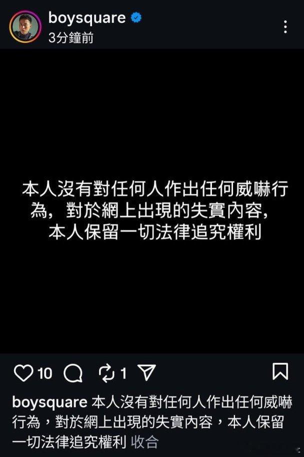 藝人麥子樂(Bryant)今日(9日)遭一名網民在社交平台公開指控「麥子樂及其勢力人士作出威嚇自身安全」,並已報執法部門求助。該網民分享多張截圖,指控受到麥子樂等人的威嚇。事件曝光後,麥子樂在個社交平台發文,表示:「本人沒有對任何人作出任何威嚇行為,對於網上出現的失實內容,本人保留一切法律追究權利。」