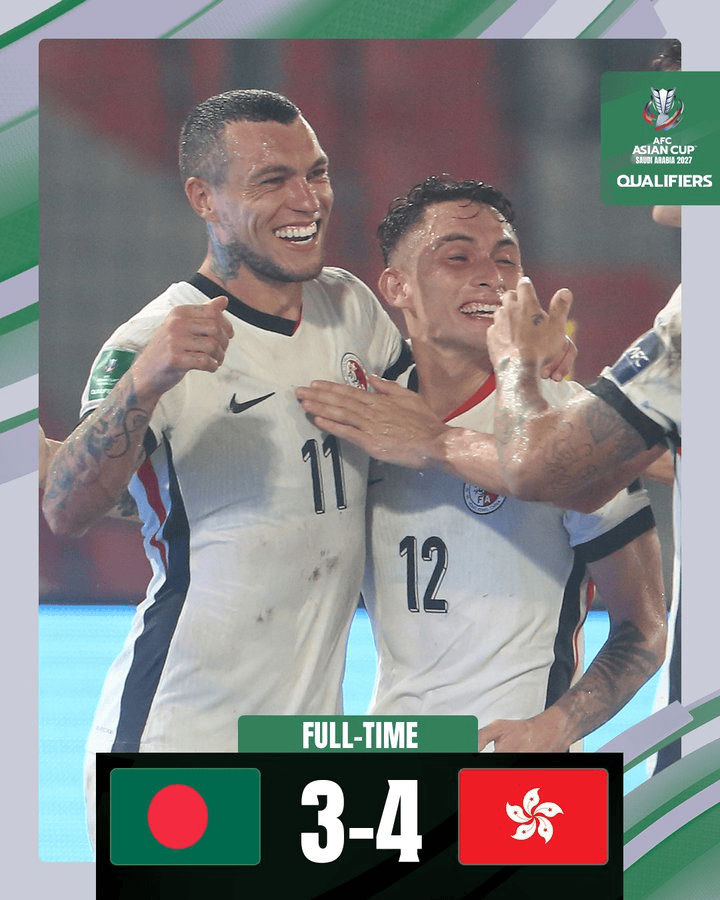 这场惊心动魄的胜利让中国香港继续保持不败,以2胜1平积7分位列小组第一,向2027年亚洲杯正赛迈出关键一步。替补出场的李小恒则凭借三粒进球,成为球队晋级之路上的最大功臣。