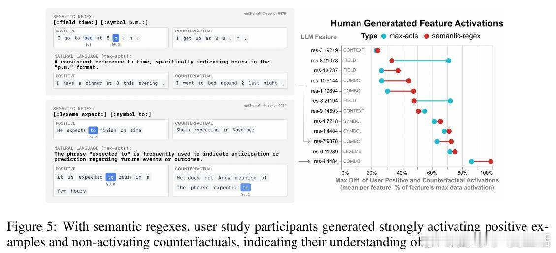 6/ 用户研究表明,语义regexes帮助使用者更准确地理解LLM特征激活模式,减少歧义,提高人机协作效率。