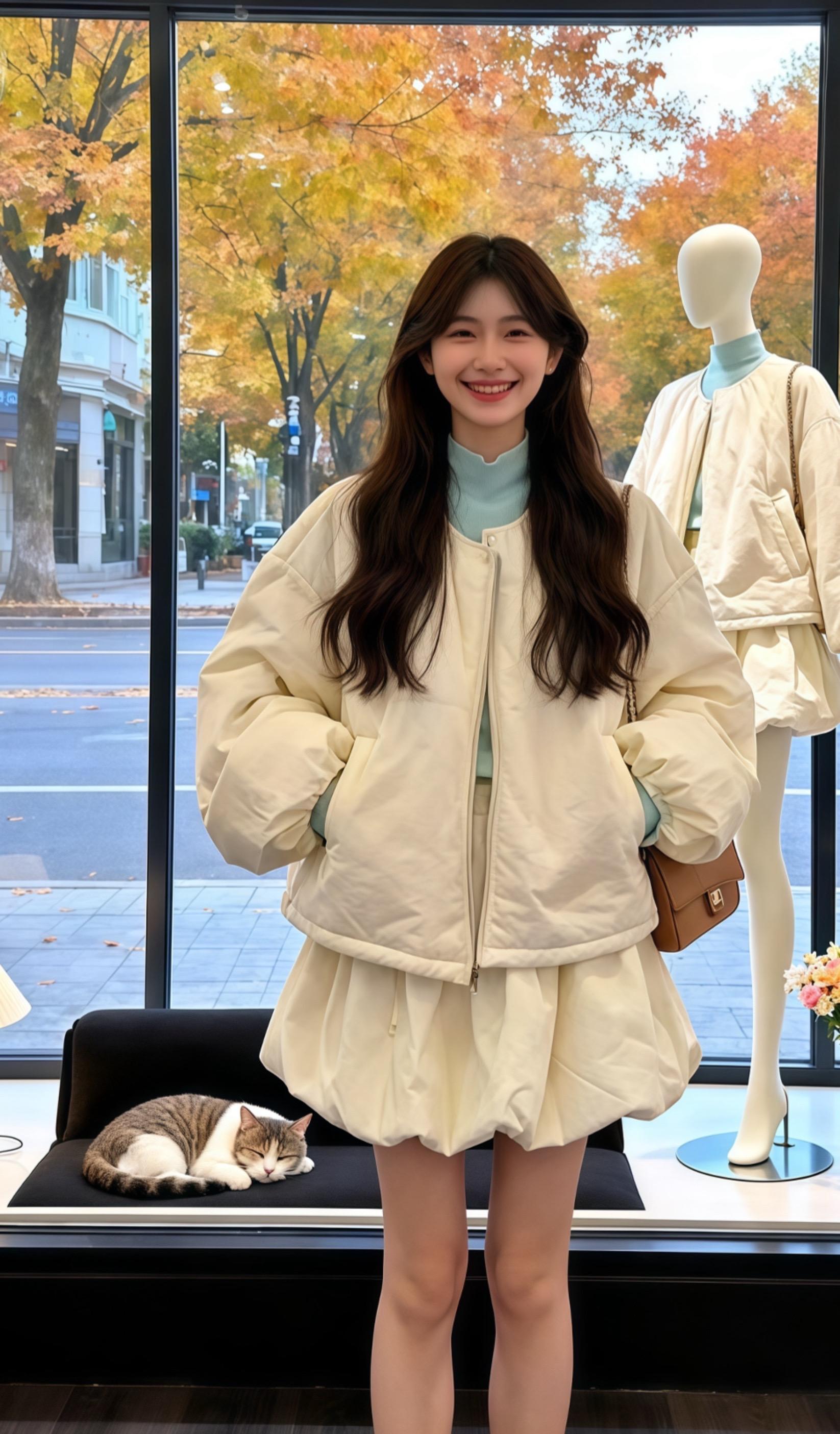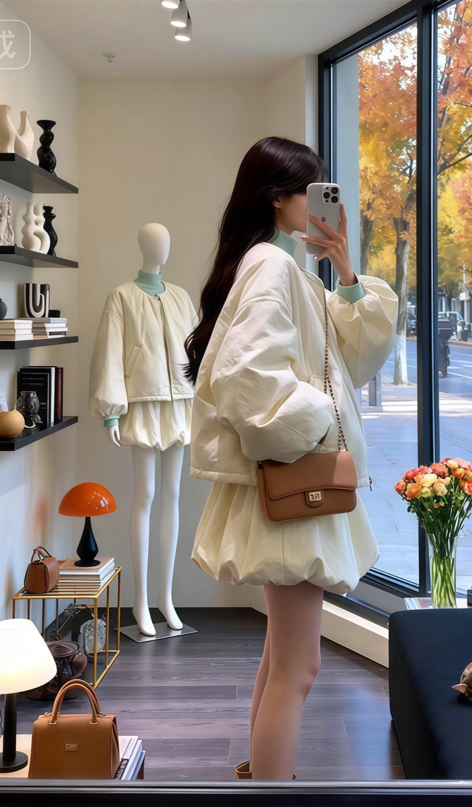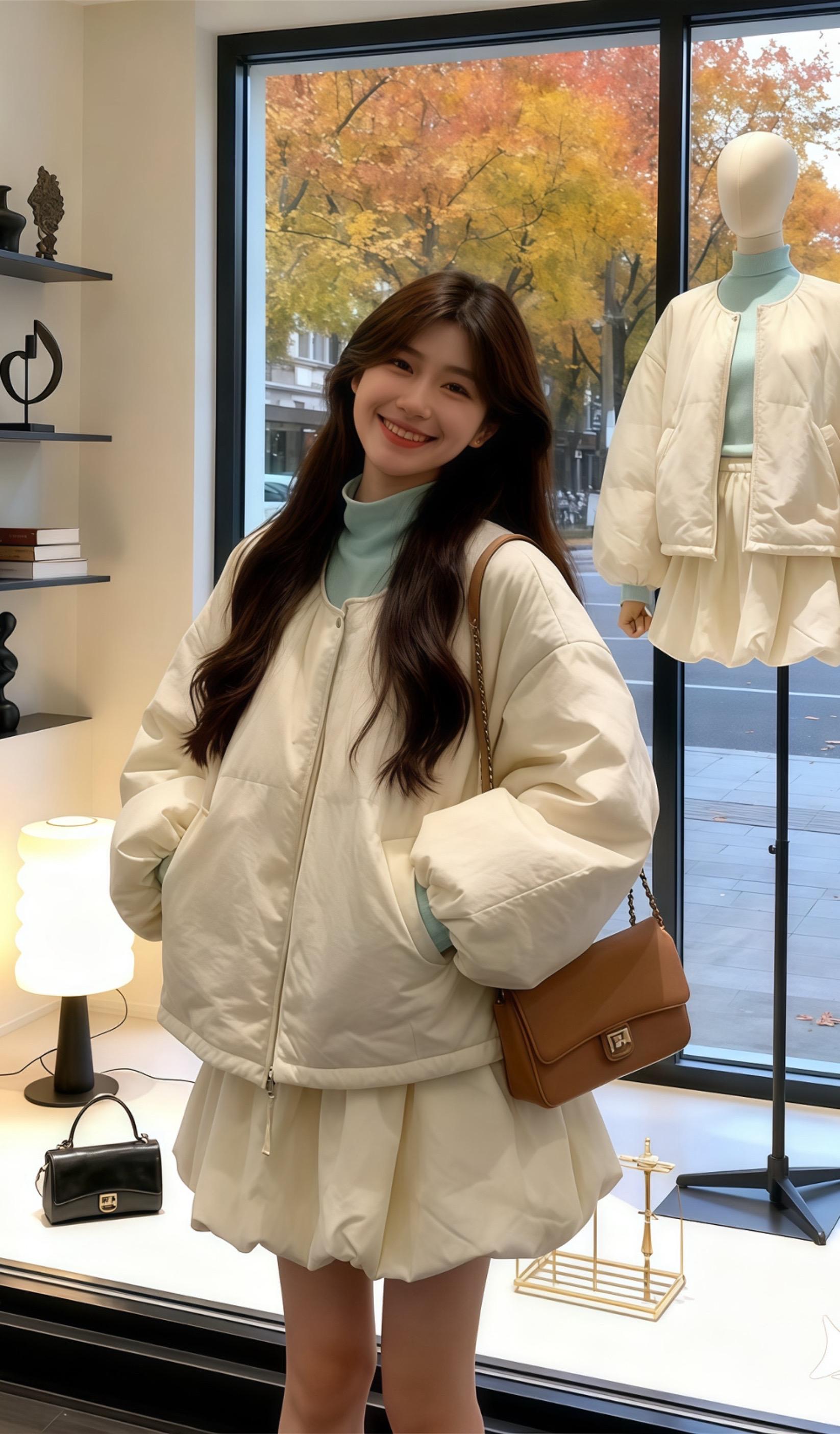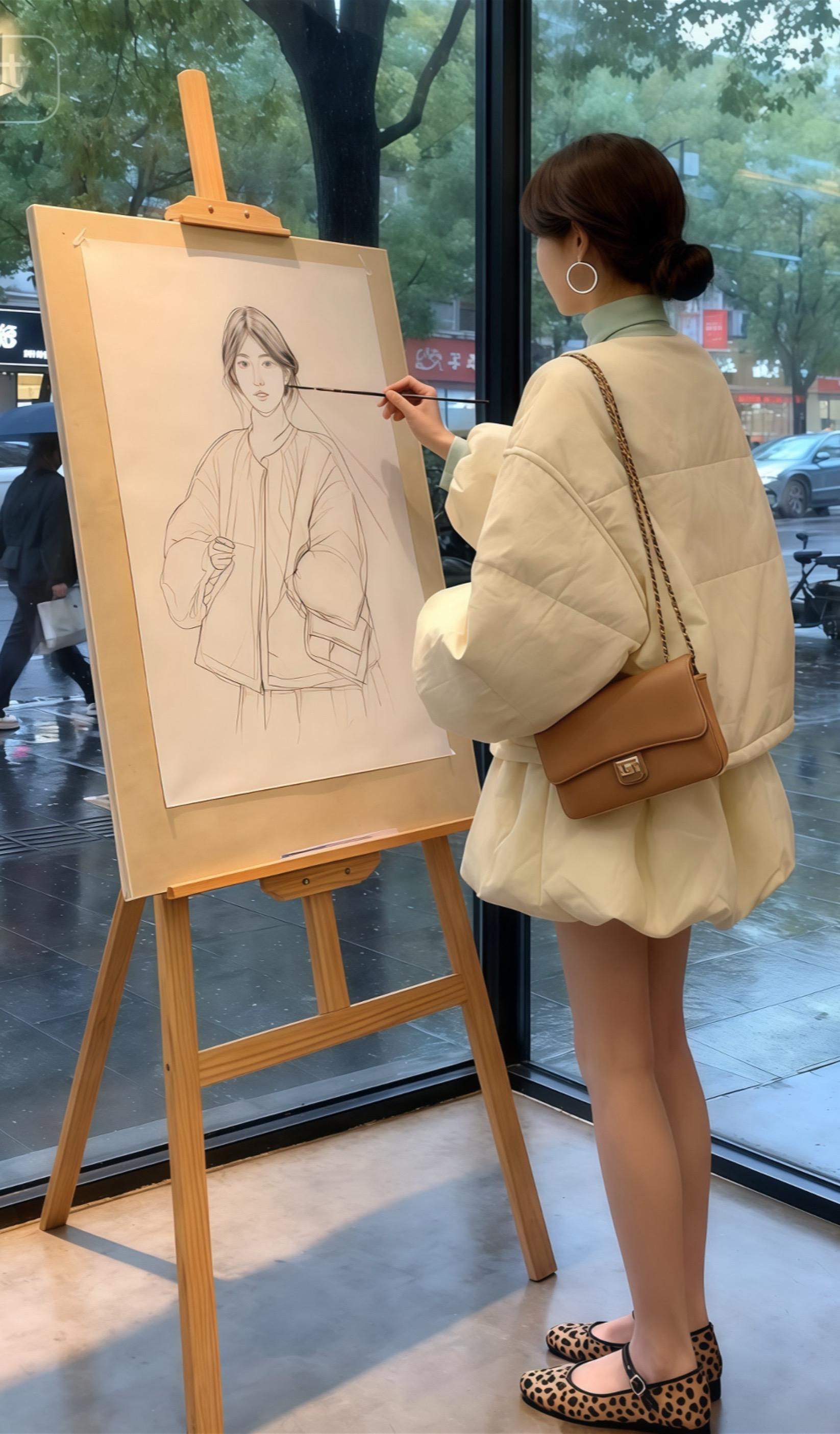 “宝子们,你们秋冬会为一件衣服的多种穿法买单吗?这件菱格棉服我先锁死了!雨天逛店