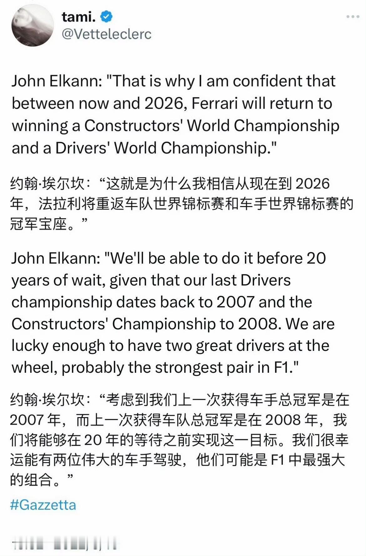 留给窝法的时间不多了!只剩一年的时间去争取车手和车队总冠军,很明显这又是一个笑话…… 他和瓦塞尔完全是一个性格,只会鸡汤,汽车人找到了,火星车却没做好。花高价签下汉密尔顿,又续签瓦塞尔,这些钱大概率喂狗了。 再来个20年,窝法还是没希望。