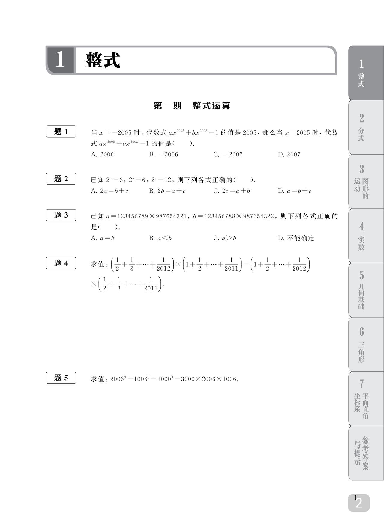 初中数学拉分题 这本书很好 如果孩子得分8成左右 有空练练这种题 打开思维 附图节选于此书系列之一 专项集训300题 较难 刚好开始建议用“解题思维训练”系列 赢在思维.初中数学拉分题解题思维训练七八九年级习题练习书籍