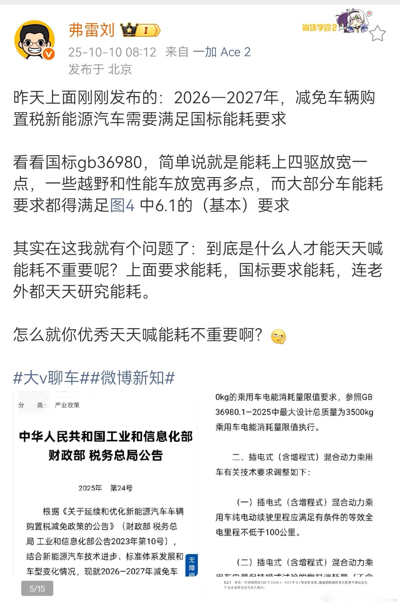 追求能耗低,不是为了省钱。