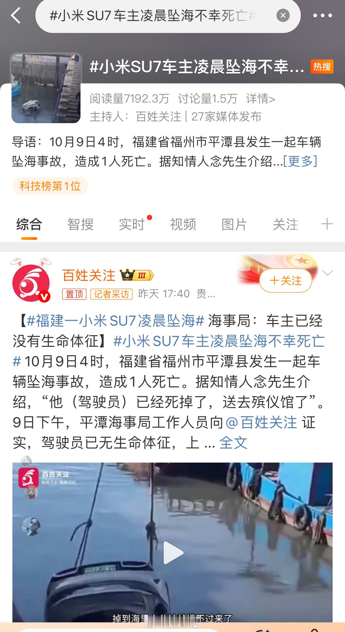 小米SU7车主凌晨坠海不幸死亡这种带小米标题,一次两次的,网友已经清醒了,不是小