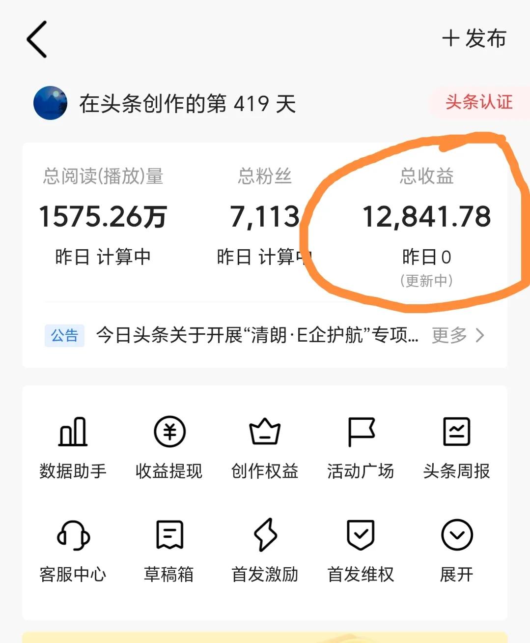 犯愁了, 写头条419天了, 收入12841.78, 这数字和人家写的没法比,自