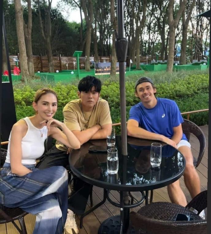 张天爱跟素人合影,胯真的好宽,大宅院似的