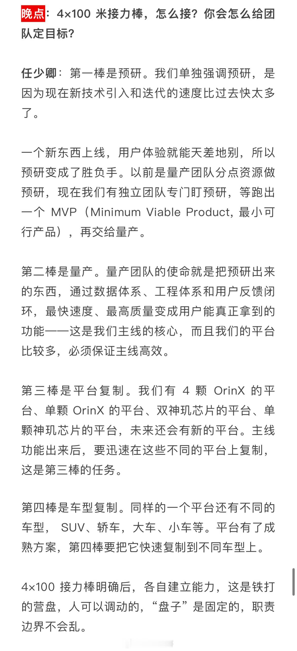 蔚来官方对此的回应是,这是一次主动的组织架构调整。公司正在推行一种叫做 “4×100接力棒” 的新模式。